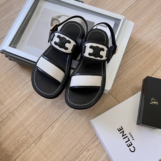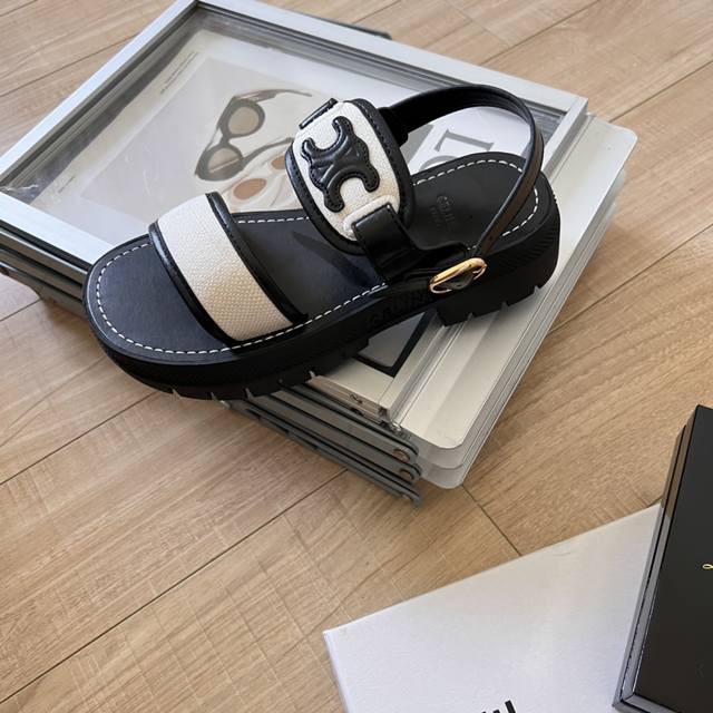 橙子出厂价 CELINE 赛琳春夏新款 复古罗马凉鞋 粗跟凉鞋码数:35-41