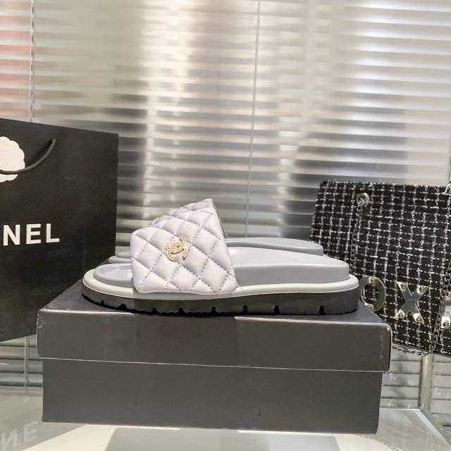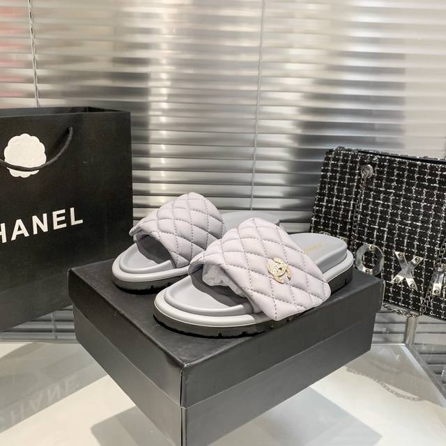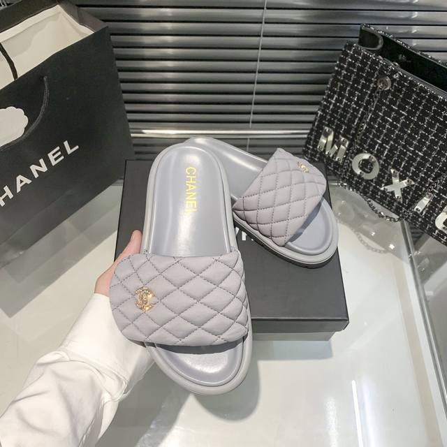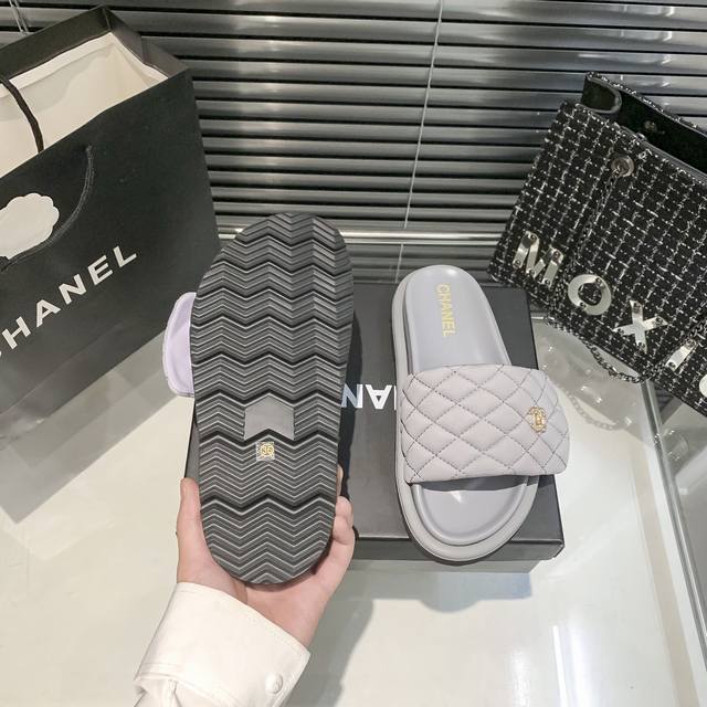 CHANEL 香奈儿春夏新款 菱格魔术贴拖鞋 厚底凉拖 情侣款