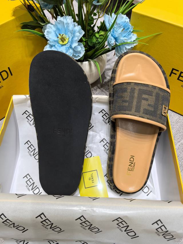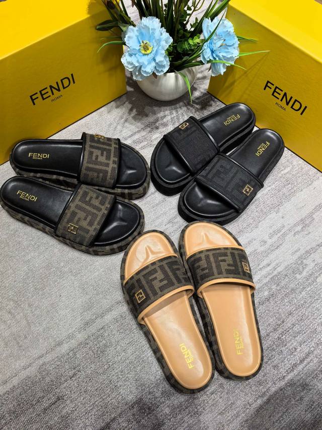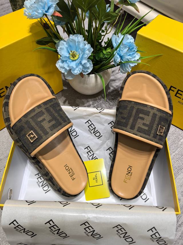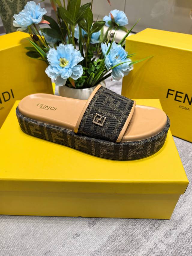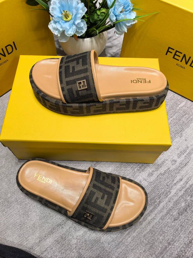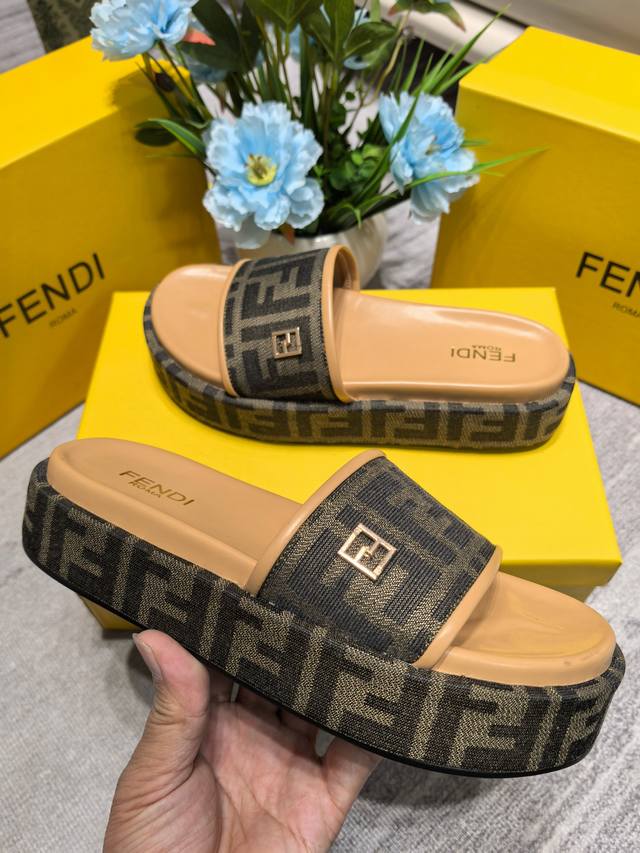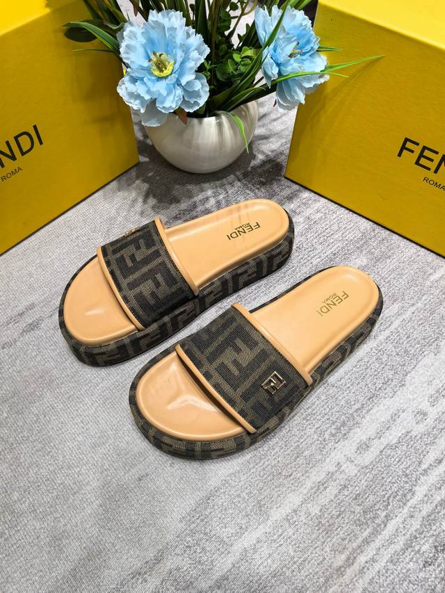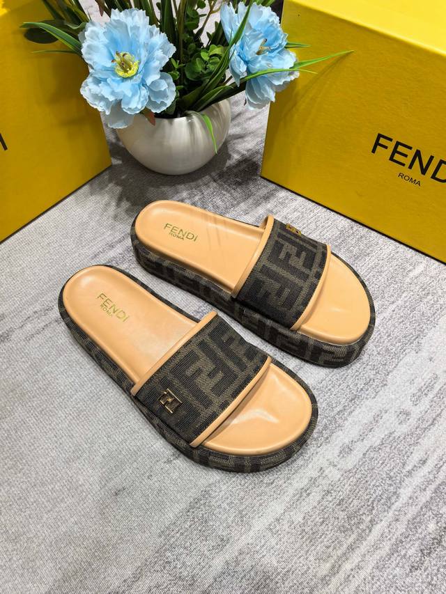 橙子出厂价 FENDI 芬迪春夏新款 FF字母印花厚底拖鞋 休闲凉拖码数:35-41