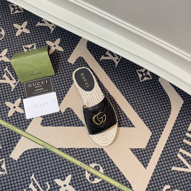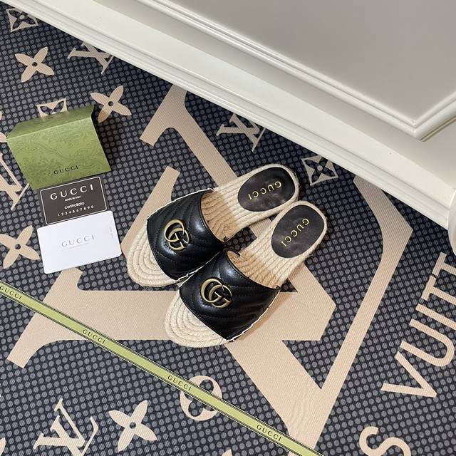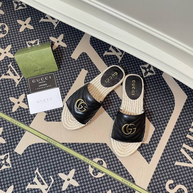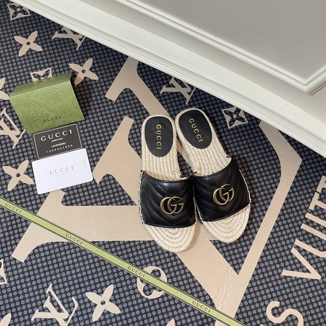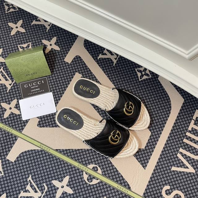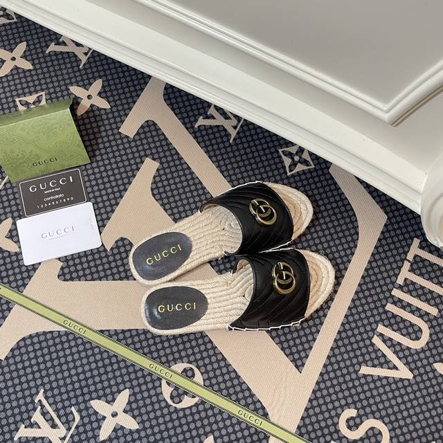 橙子出厂价 GUCCI 古驰春夏新款 双G扣渔夫拖鞋 草编凉拖码数:35-42