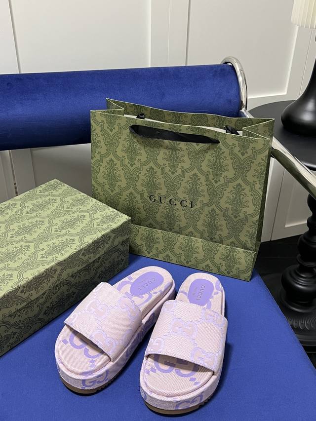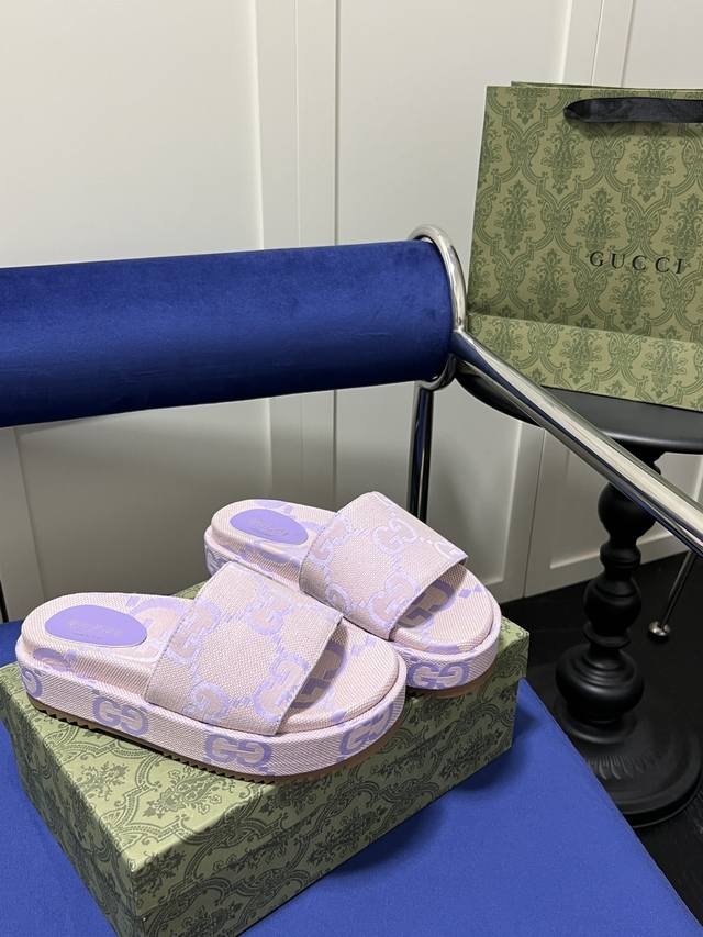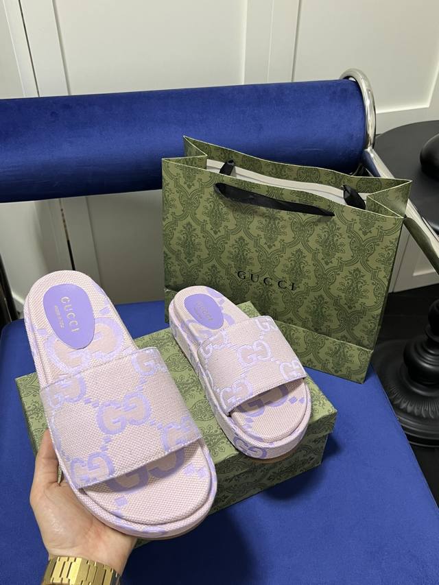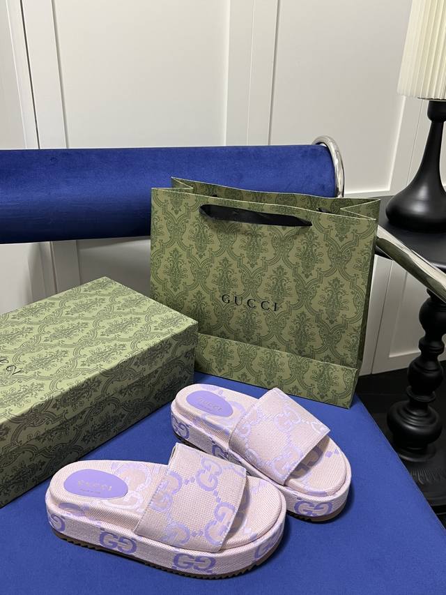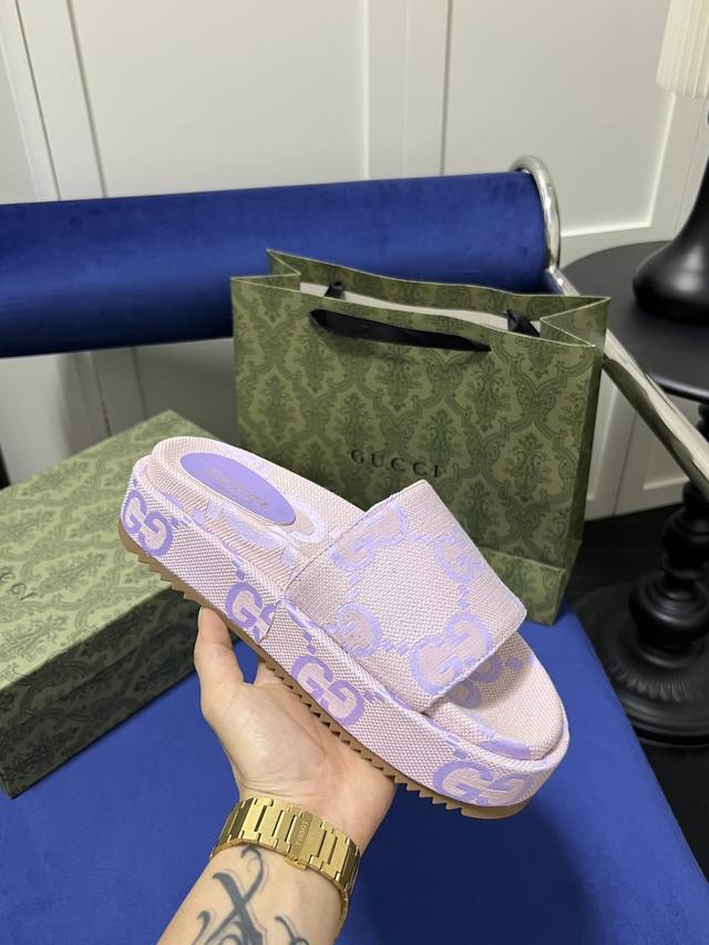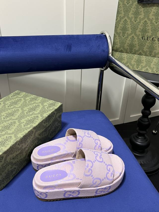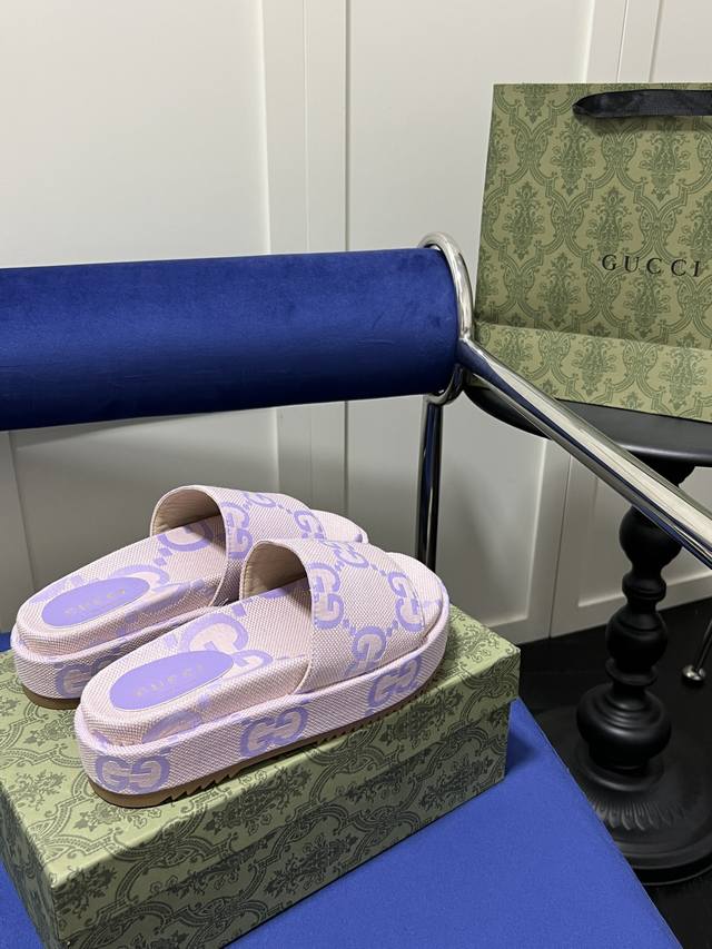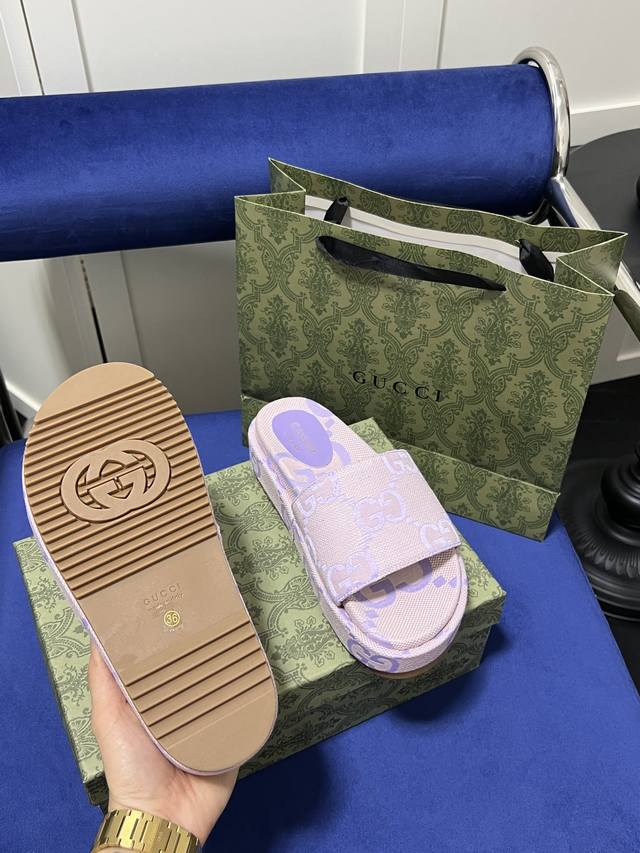橙子出厂价 Gucci 古驰春夏新款 大GG防水台厚底拖鞋 凉拖 情侣款跟高:4.5CM码数:35-46