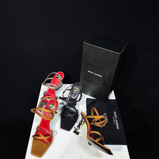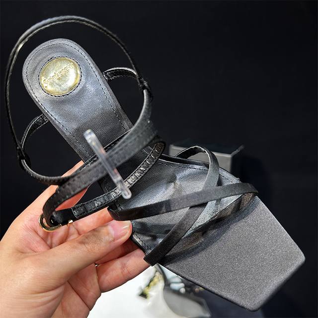 橙子出厂价 Saint Laurent 圣罗兰 YSL字母跟 细带方头高跟凉鞋颜色:黑色字母跟、金色字母跟跟高:8CM码数:34-40