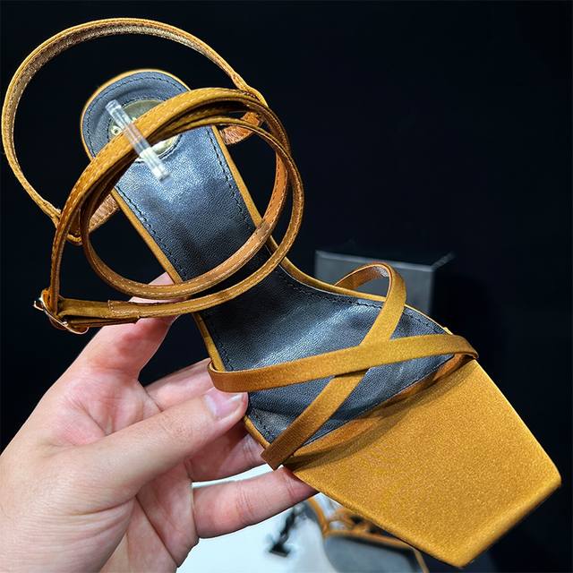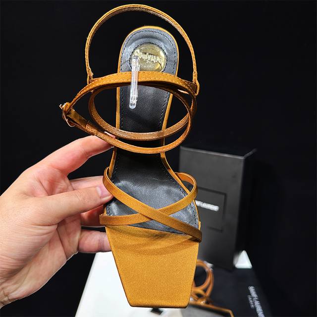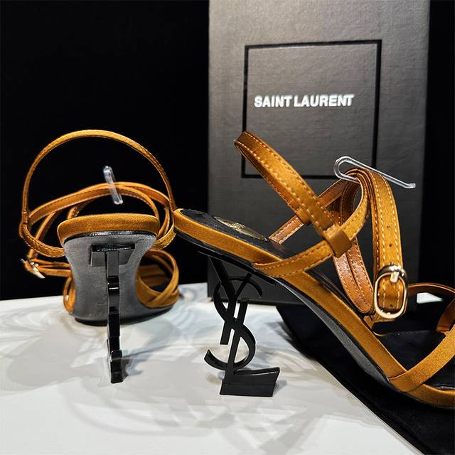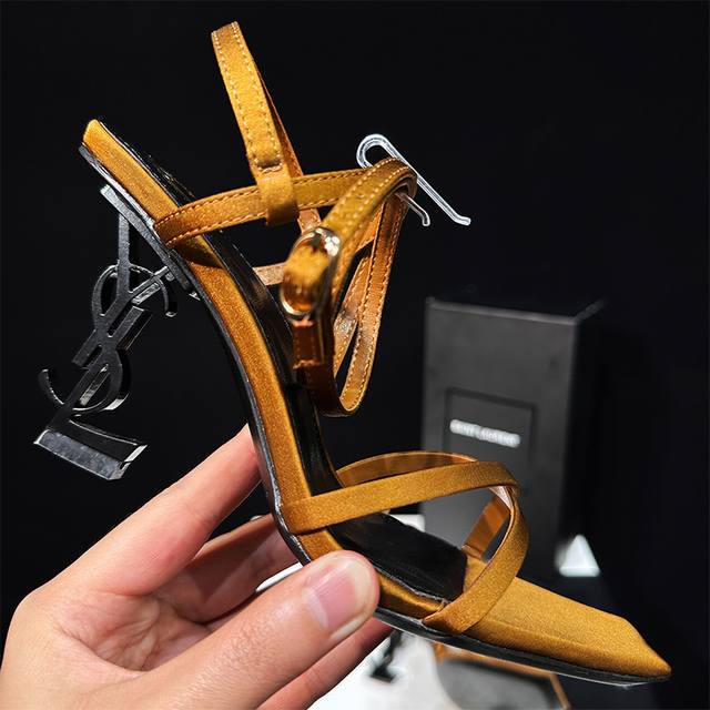 橙子出厂价 Saint Laurent 圣罗兰 YSL字母跟 细带方头高跟凉鞋颜色:黑色字母跟、金色字母跟跟高:8CM码数:34-40
