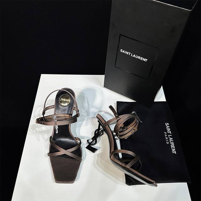 Saint Laurent 圣罗兰 YSL字母跟 细带方头高跟凉鞋