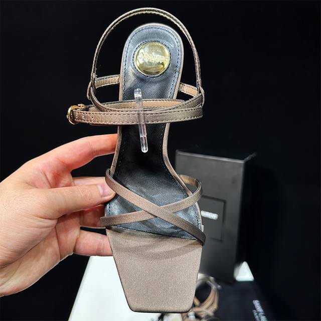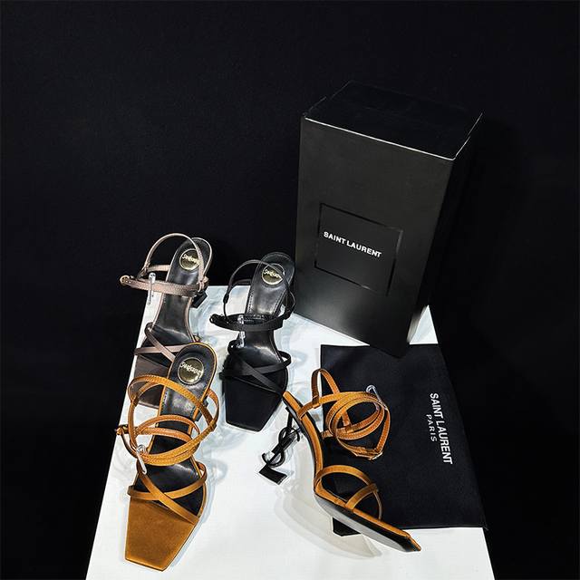 橙子出厂价 Saint Laurent 圣罗兰 YSL字母跟 细带方头高跟凉鞋颜色:黑色字母跟、金色字母跟跟高:8CM码数:34-40