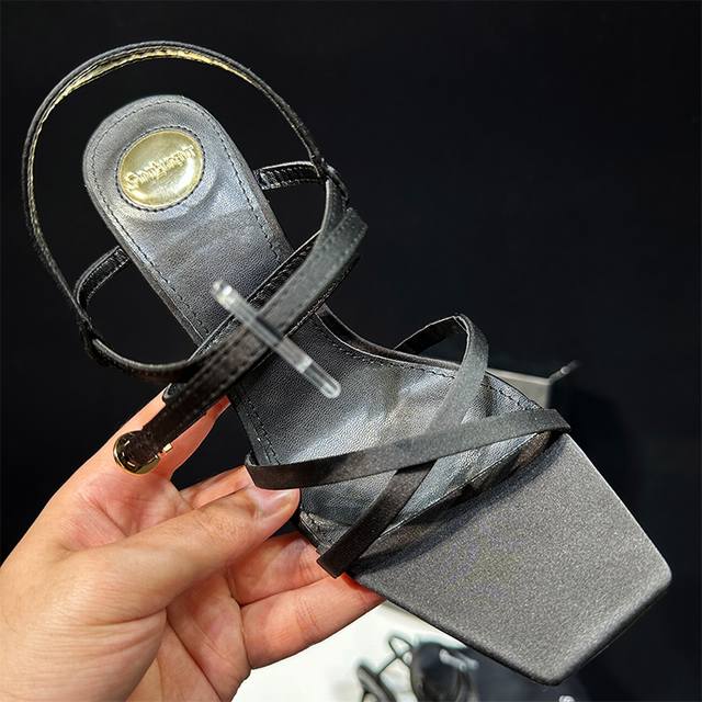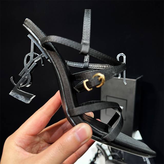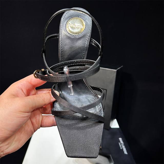 橙子出厂价 Saint Laurent 圣罗兰 YSL字母跟 细带方头高跟凉鞋颜色:黑色字母跟、金色字母跟跟高:8CM码数:34-40