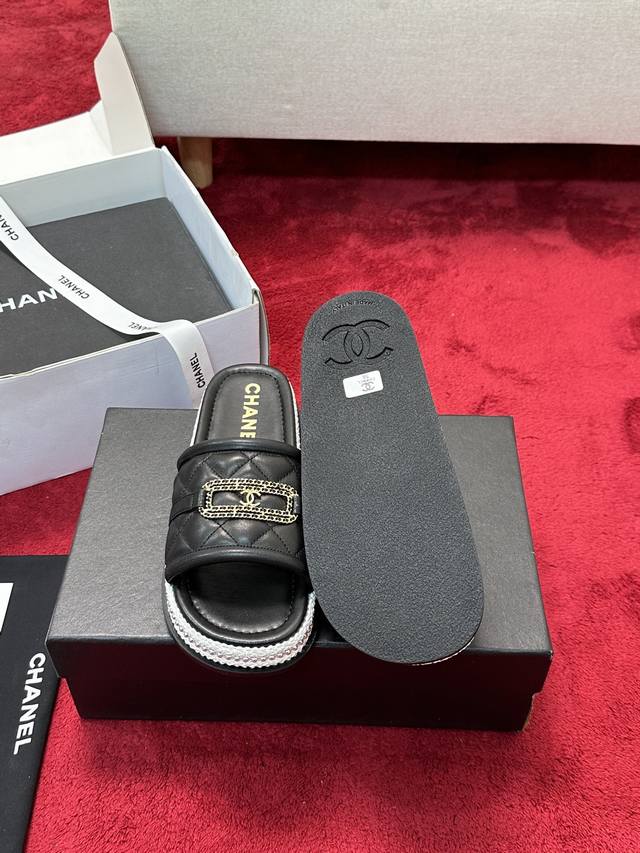 珍珠底拖鞋:面料混种羊皮,内里羊皮里,配码35-39, 定制40-41,