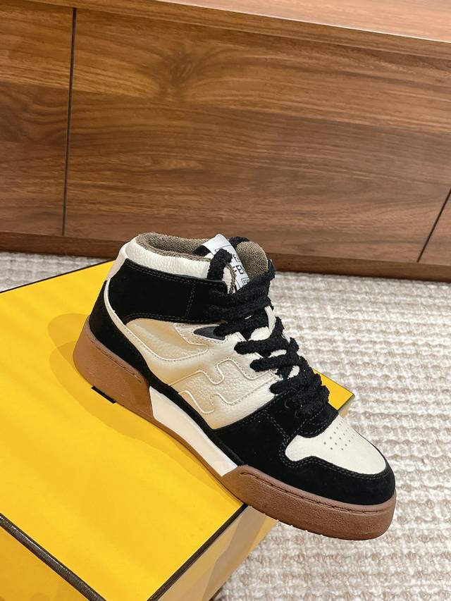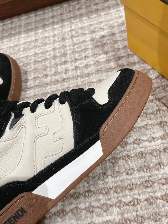 男+10 # 芬迪情侣款休闲运动鞋 设计师Kim Jones打造的首款运动鞋fendi match 和驴牌的Trainer篮球运动鞋 新鲜血液注入加FF复古的设计 超好看百搭 鞋面采用麂皮和皮革拼接组合 侧面凸起的双F logo内里采用毛巾绒里 上脚超级柔软 轻便 舒适搭配卫衣 Size:女35-40 男39-45M
