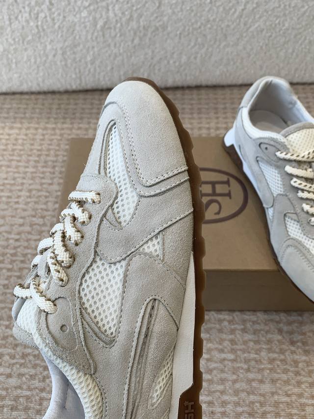 面料:高丝光牛反绒原版开模网布 鞋底:橡胶大底 内里:羊皮