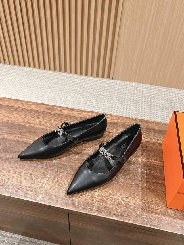 皮面 #爱马仕春夏最新kelly扣尖头平底单鞋 柜柜超难配货 经典的尖头版型 搭配极具辨识度的马家五金扣 上脚超级百搭好看时髦 超多明星网红种草 春夏必备 随意