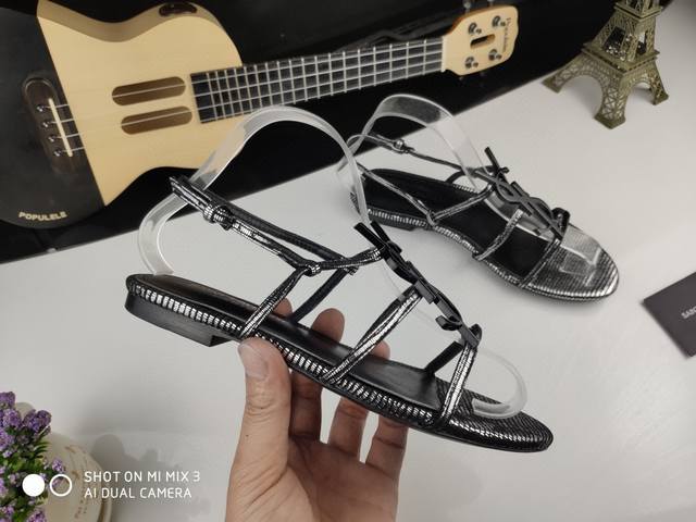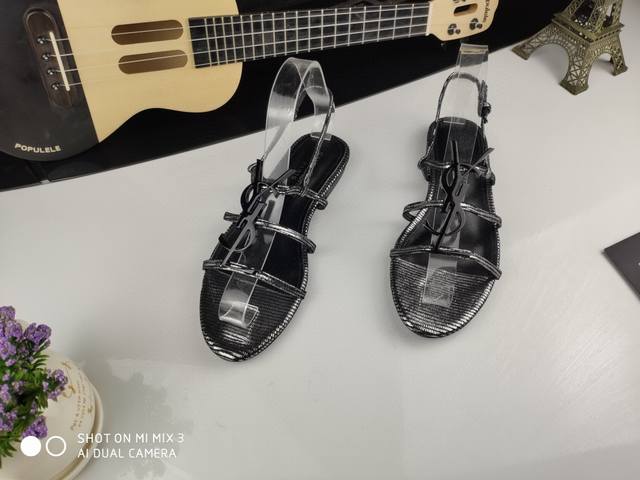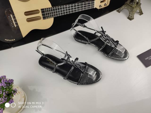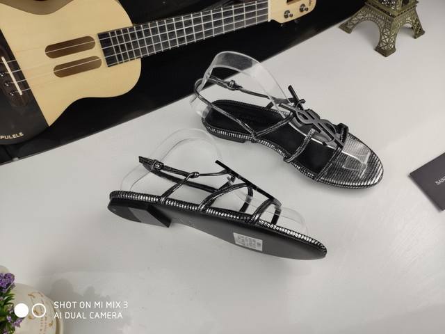 Saint Laurent 圣罗兰、一字带凉鞋早春专柜同步最新款、YSL、Logo字母扣装饰