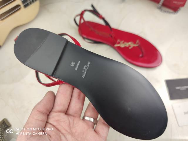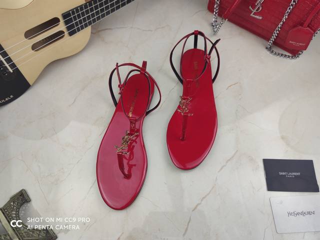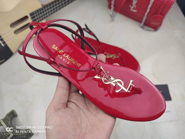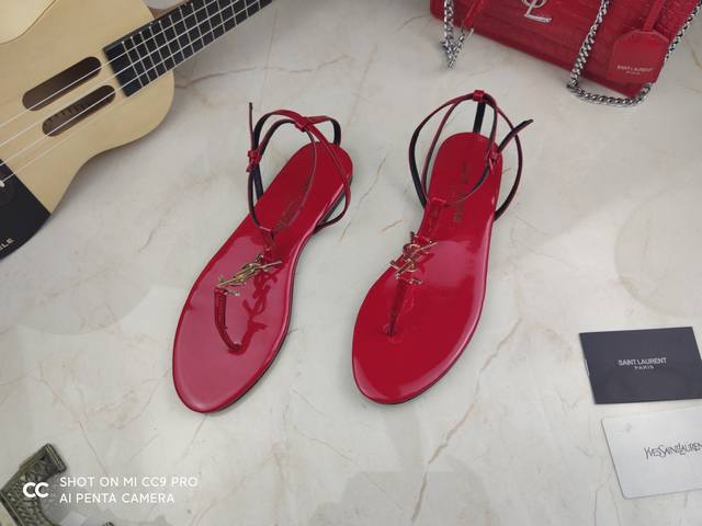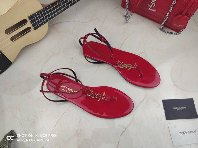 真皮底 Saint Laurent 圣罗兰、平板凉鞋早春专柜同步最新款、YSL、Logo字母扣装饰