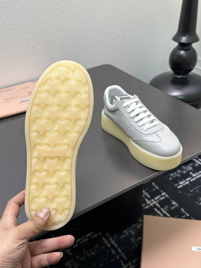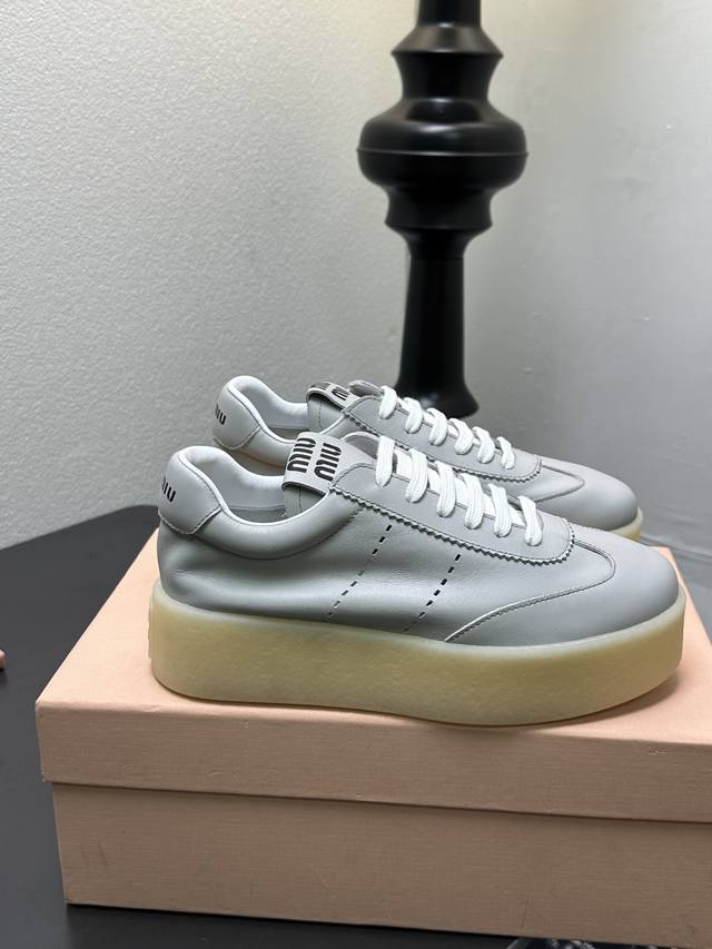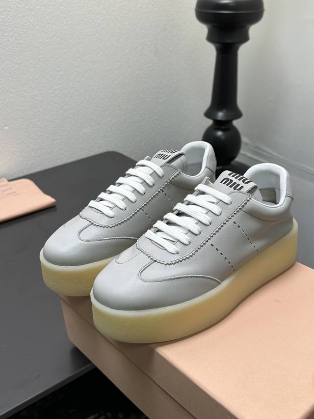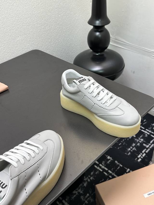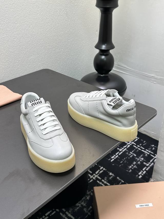 Miu miu 缪缪2025新款休闲小白鞋,各大品牌中脱颖而出的四季鞋颜值担当火爆款脏脏鞋,不得不入的一款~做旧时尚,简约高级 随意搭配上脚非常舒适,年度必入款!