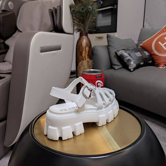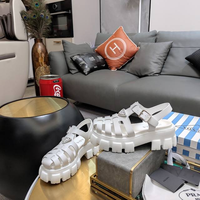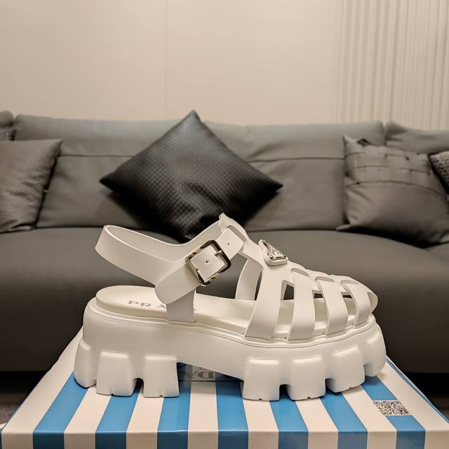经典罗马镂空款“顶级版”经典轮齿底回归五色现货 顶级包装配套最高版本 PRADA 24 新品推荐 Prada轮胎橡胶凉鞋。