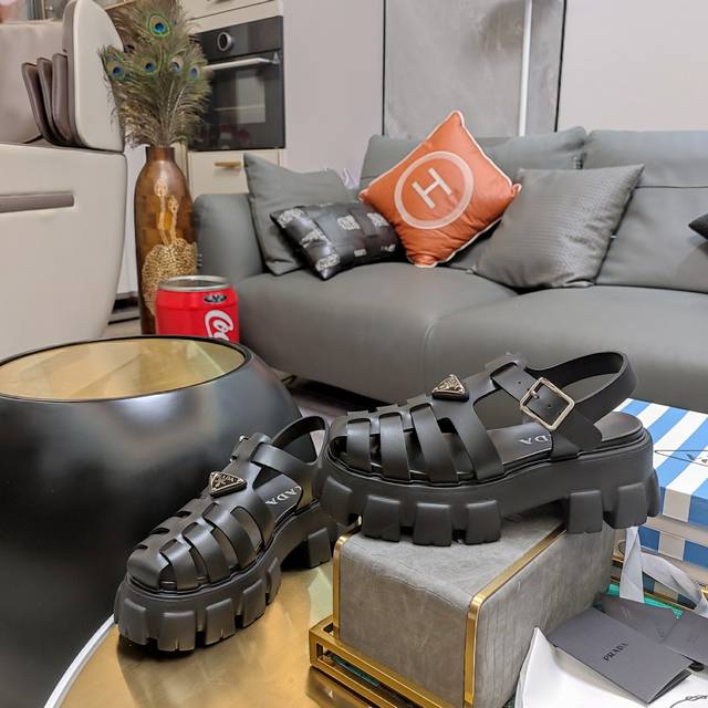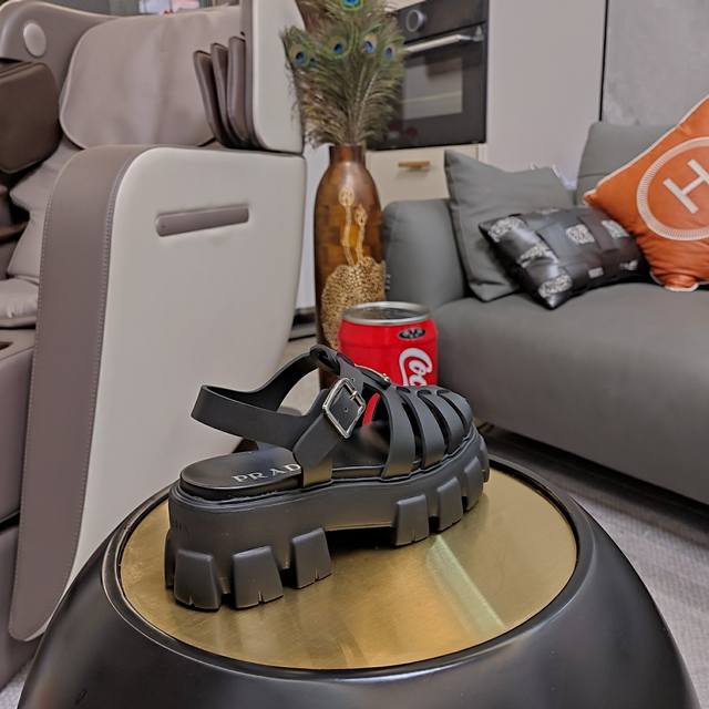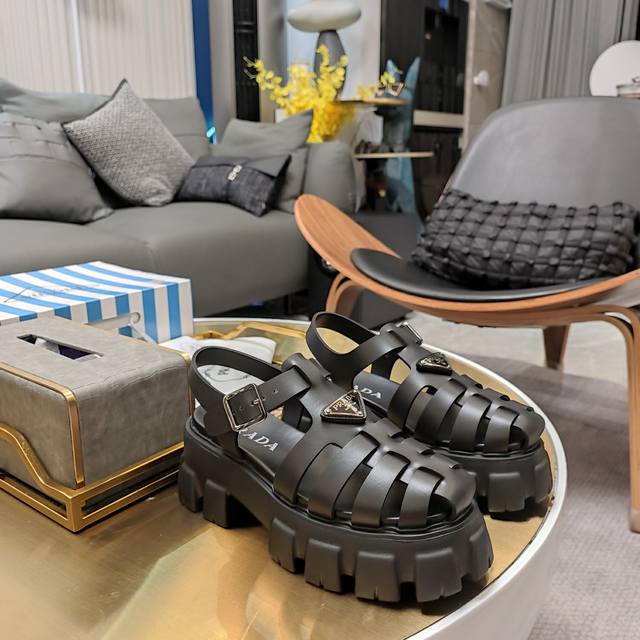 经典罗马镂空款“顶级版”经典轮齿底回归五色现货 顶级包装配套最高版本 PRADA 24 新品推荐 Prada轮胎橡胶凉鞋。