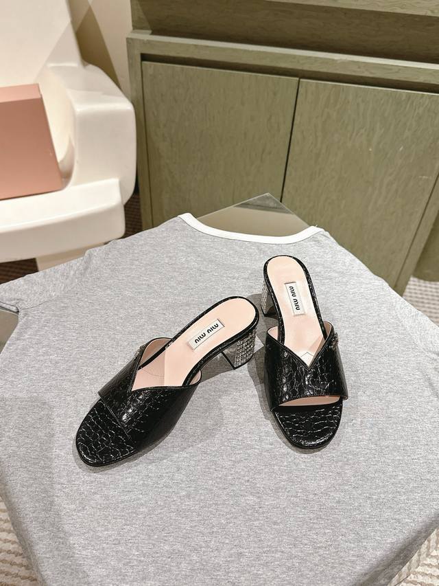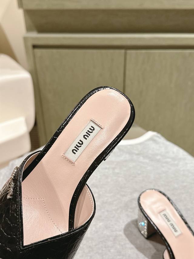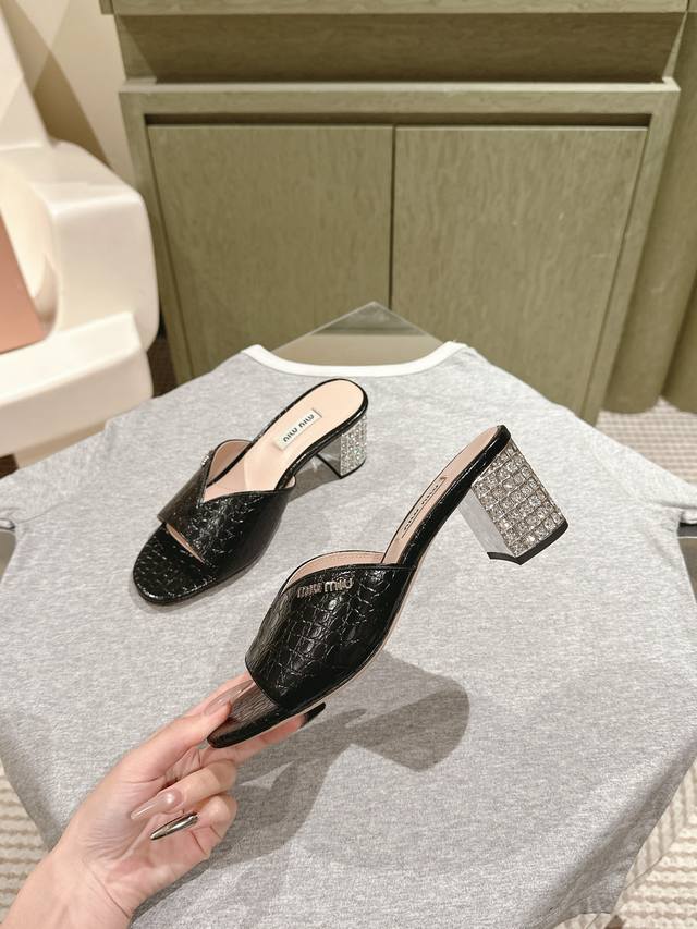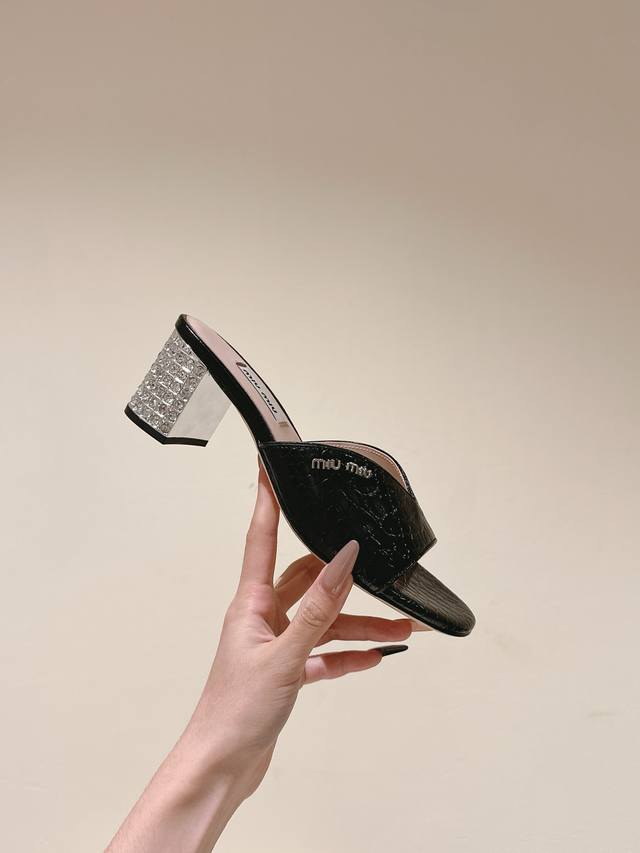 缪 缪 新款钻拖鞋系列上新★★★★★ 舒适度与时髦度并存的开挂全新系列,设计搭配,简约大方,百搭时尚! 鞋面:原版定制材料电绣钻牛皮 内里: 原版定制羊皮 大底