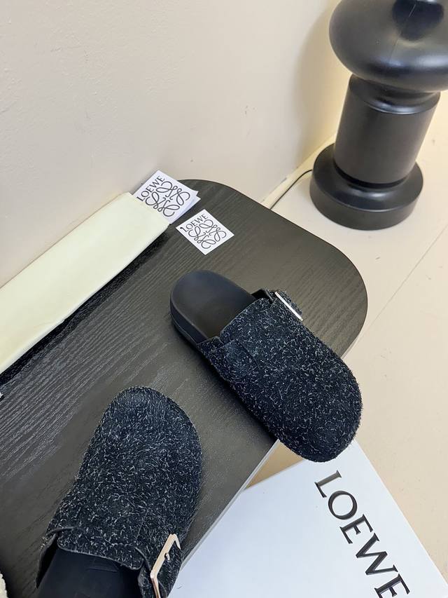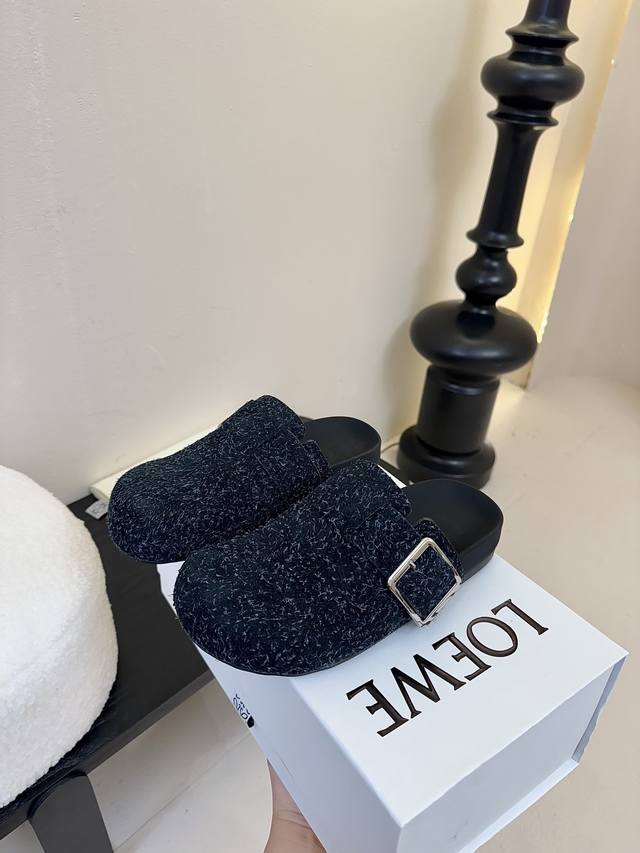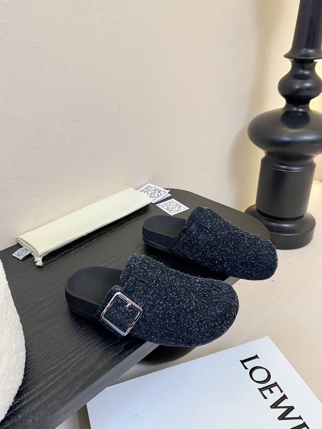 罗意威LOEWE最新英伦风潮酷系列专柜同步新品穆勒拖喜欢这种风格的小仙女必须要入手哦!鞋面采用进口呢绒面料,内里混种羊皮,意大利真皮大底!上脚非常舒适 大头的设