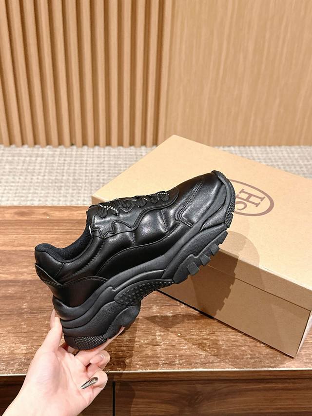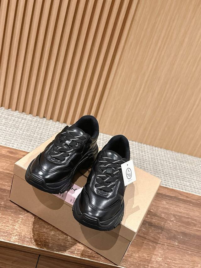 艾熙新款厚底老爹鞋休闲运动鞋 原版进口小牛皮 羊皮里 开模橡胶大底 厚底6.5cm Size:35 39 40定做不退换