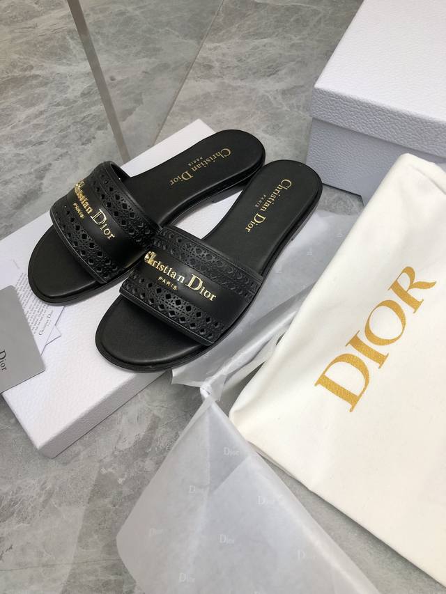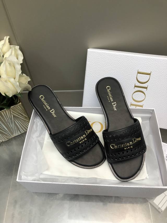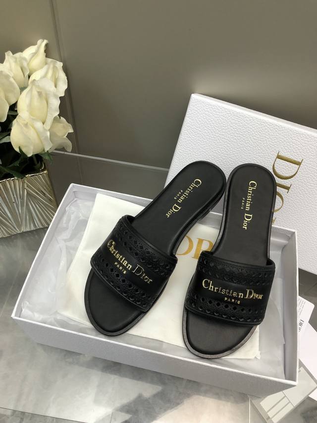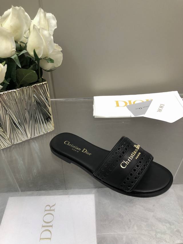 迪奥 Dior 早春新款女鞋 CD字母logo平底拼色一字拖鞋 市面顶级版本 材质:鞋面进口牛皮 牛皮皮内里+意大利真皮大底 跟高:平跟size:35-41