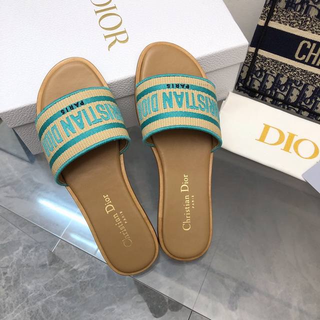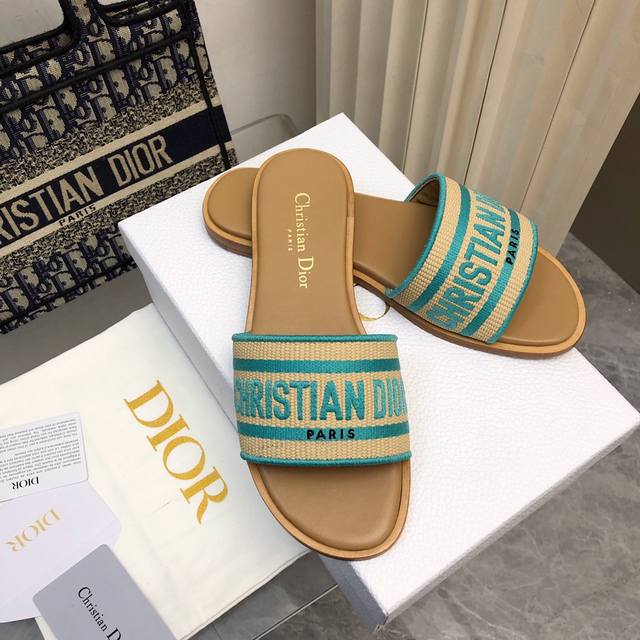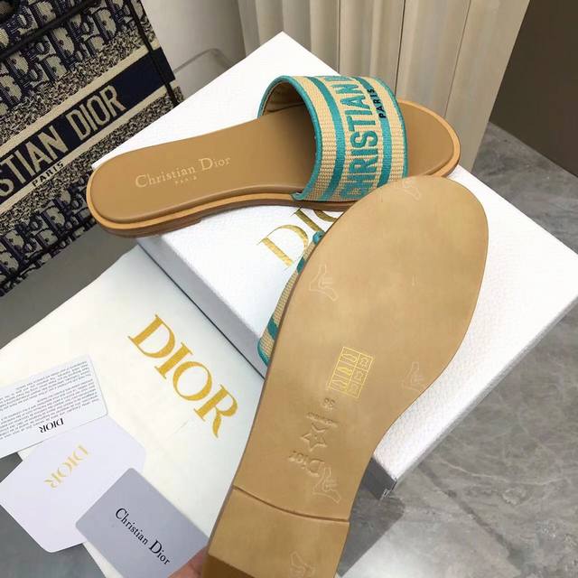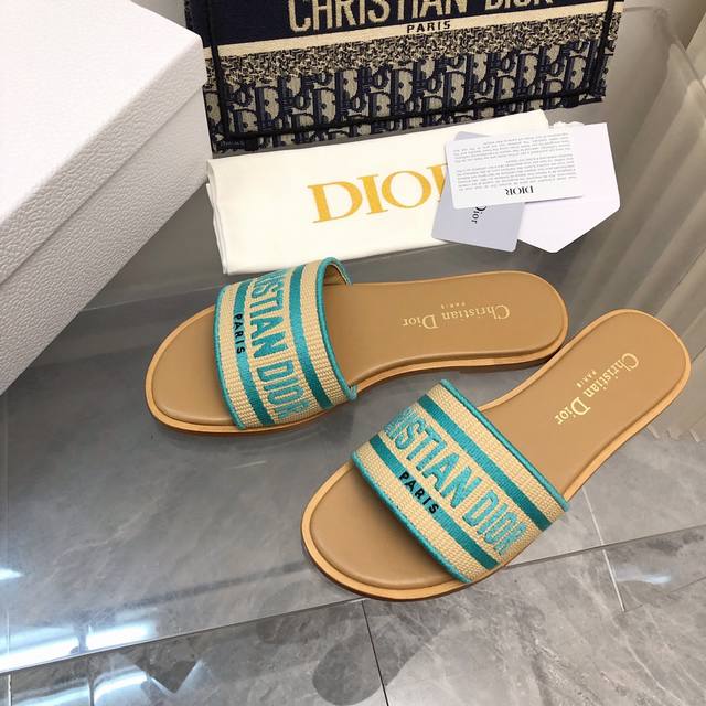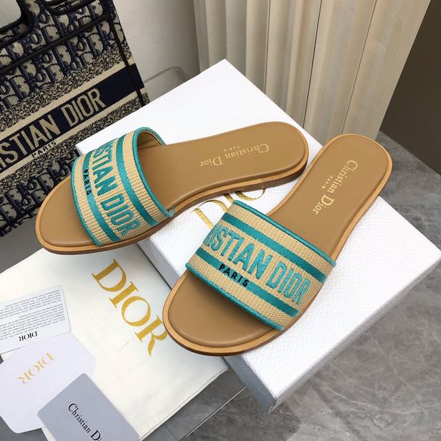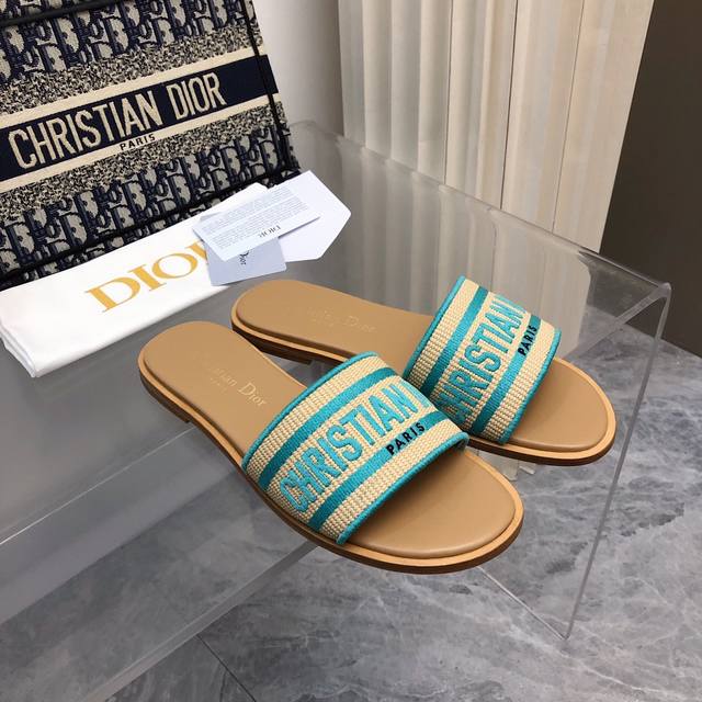 / 迪奥 Dior 2025春夏新款女鞋 CD字母刺绣logo平底拼色一字拖鞋 市面顶级版本 材质:鞋面进口牛皮 牛皮皮内里+意大利真皮大底 跟高:平跟size:3