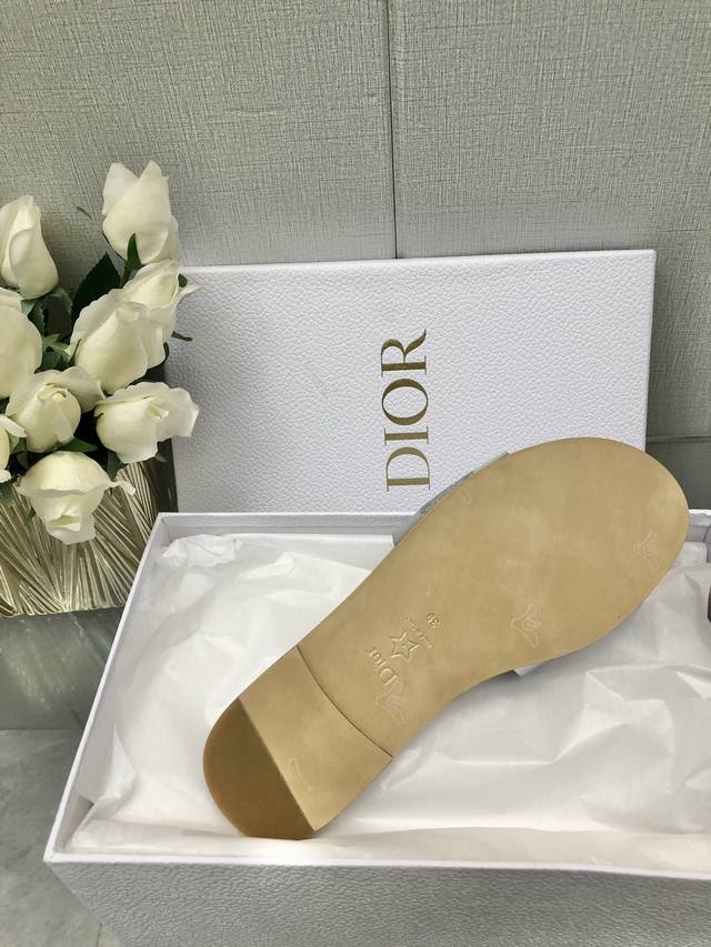 / 迪奥 Dior 2025 春夏新款女鞋 CD字母刺绣logo平底拼色一字拖鞋 市面顶级版本 材质:鞋面进口牛皮 牛皮皮内里+意大利真皮大底 跟高:平跟size: