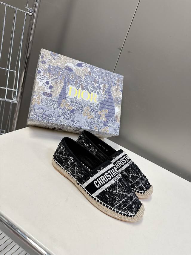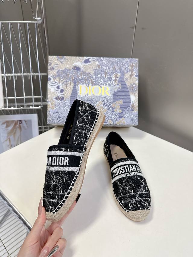 / 迪奥DIOR春夏新款爆款渔夫鞋 简约大气时髦,耐看不过时,是时尚圈永不退潮的经典所在,复古的渔夫鞋。原版手工编织面,电绣工艺!特定布面 原版开模生胶防滑大底Si