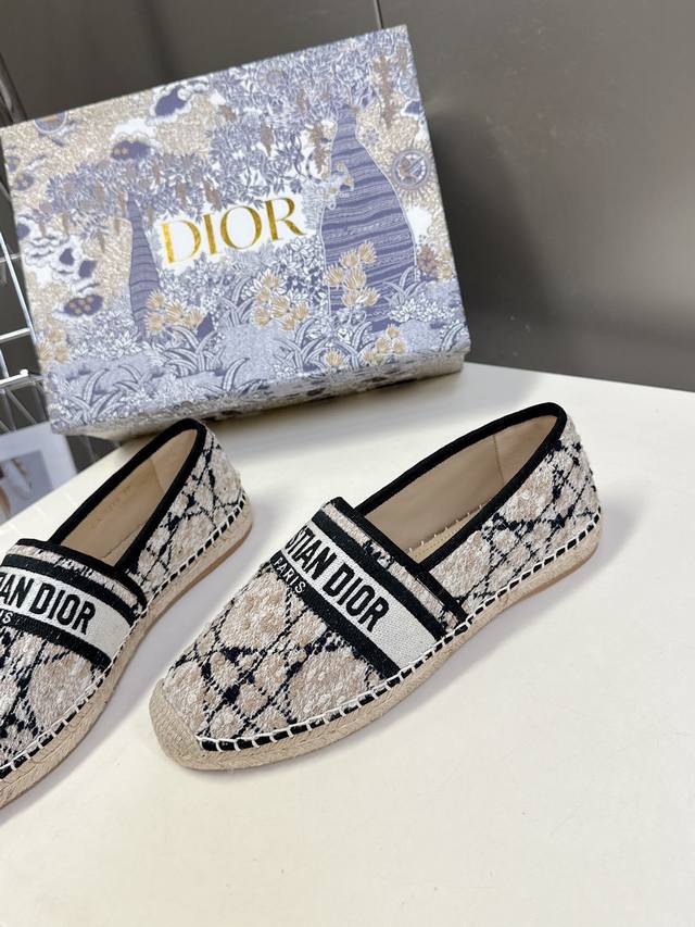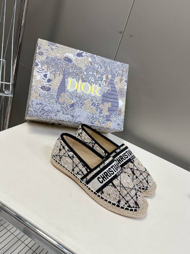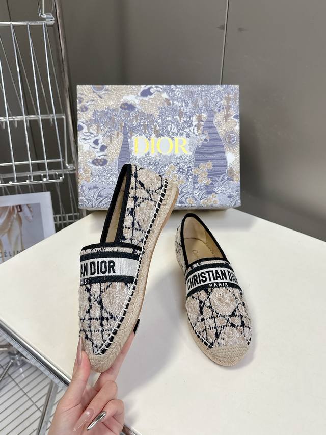 迪奥DIOR春夏新款爆款渔夫鞋 简约大气时髦,耐看不过时,是时尚圈永不退潮的经典所在,复古的渔夫鞋。原版手工编织面,电绣工艺!特定布面 原版开模生胶防滑大底Si