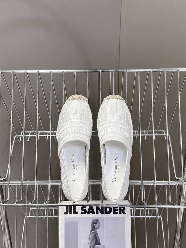 迪奥DIOR春夏新款爆款渔夫鞋 简约大气时髦,耐看不过时,是时尚圈永不退潮的经典所在,复古的渔夫鞋。原版手工编织面,电绣工艺!特定布面 原版开模生胶防滑大底Si
