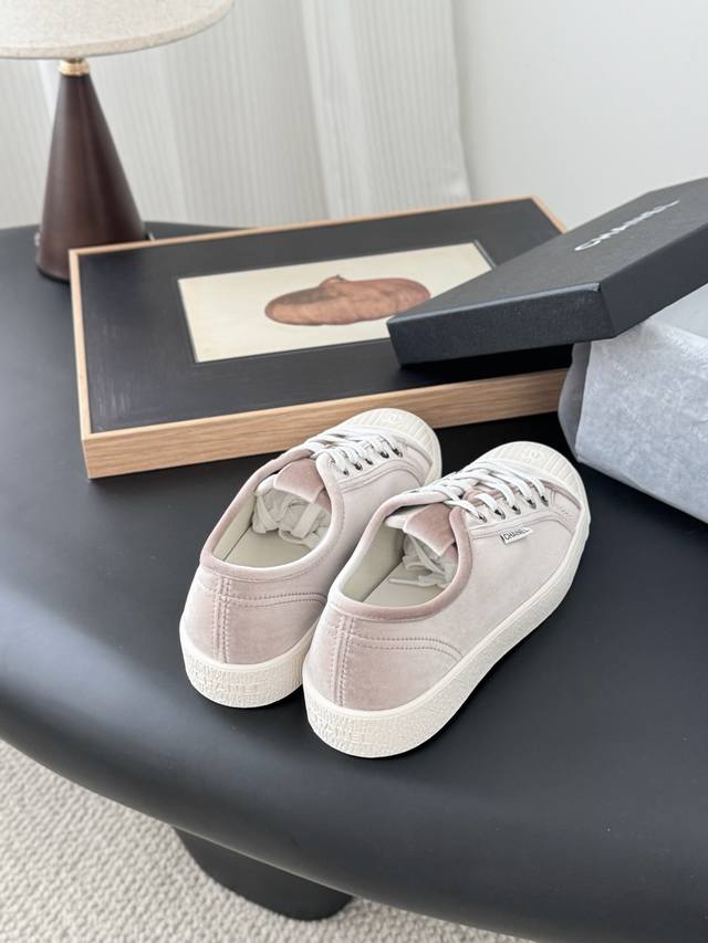 配白色飞机盒Chanel 25C隐藏款休闲小白鞋!Vintage感满满,中古复刻款get啦~小白鞋适配春夏,黑白拼接就很Chanel。配合袜子就很复古学院的感觉