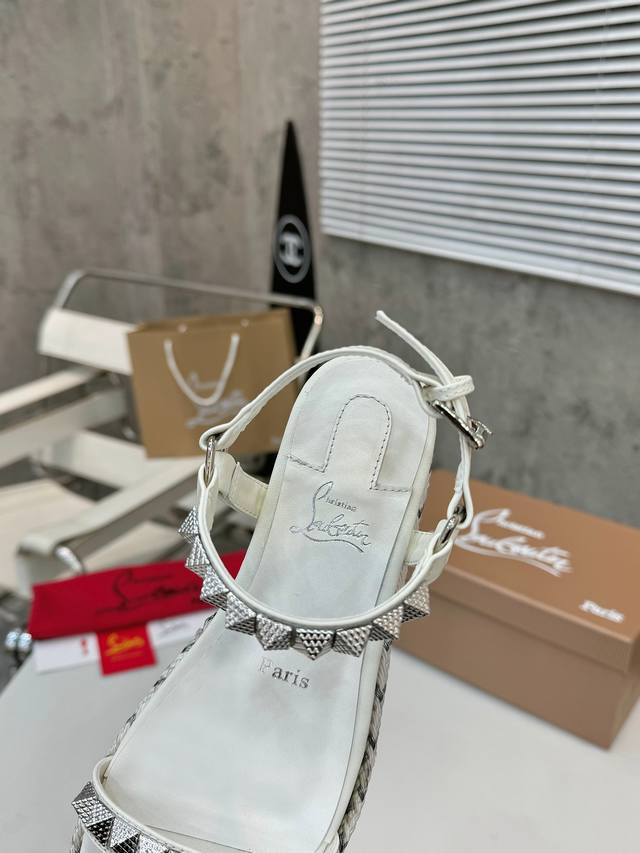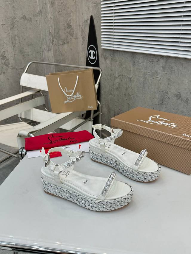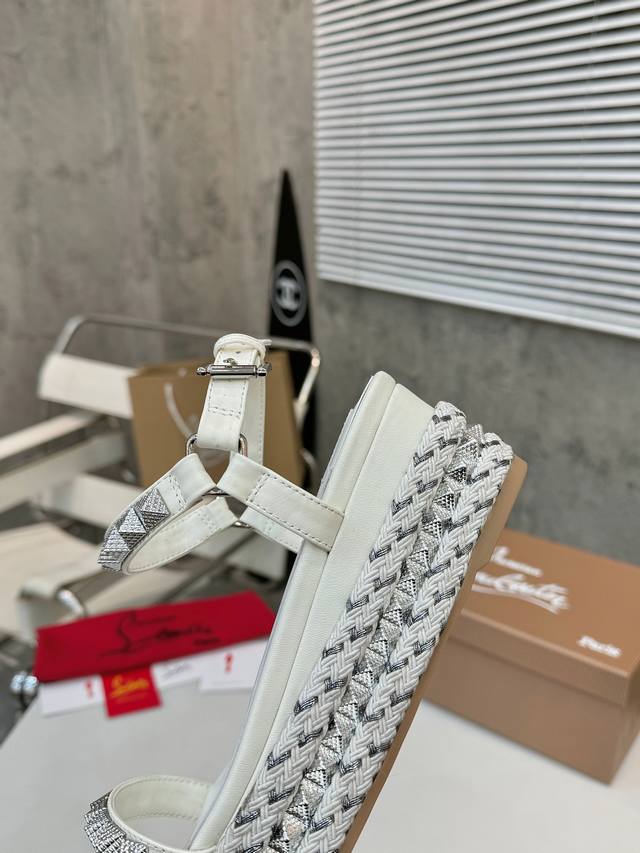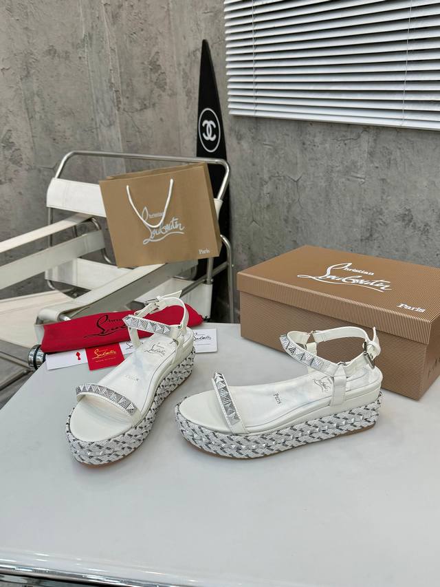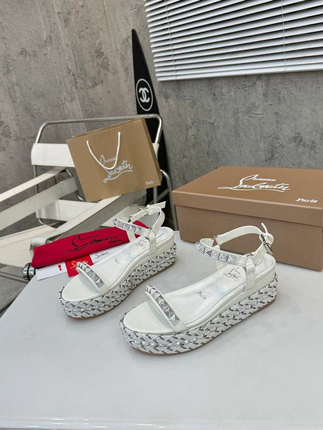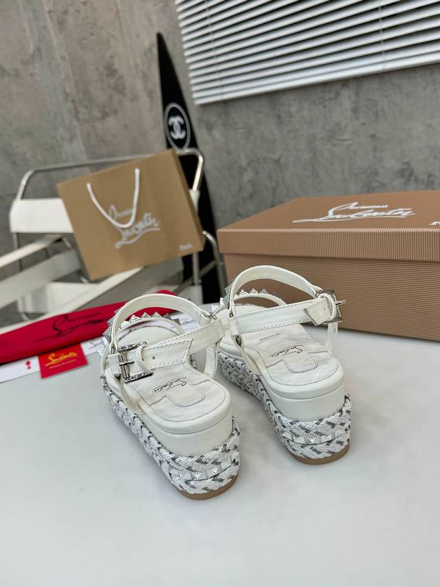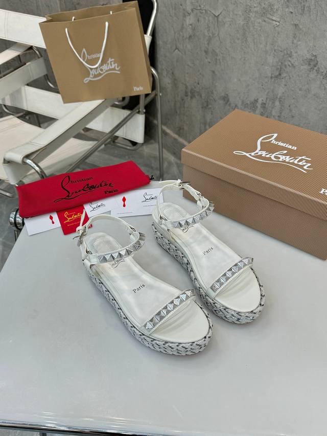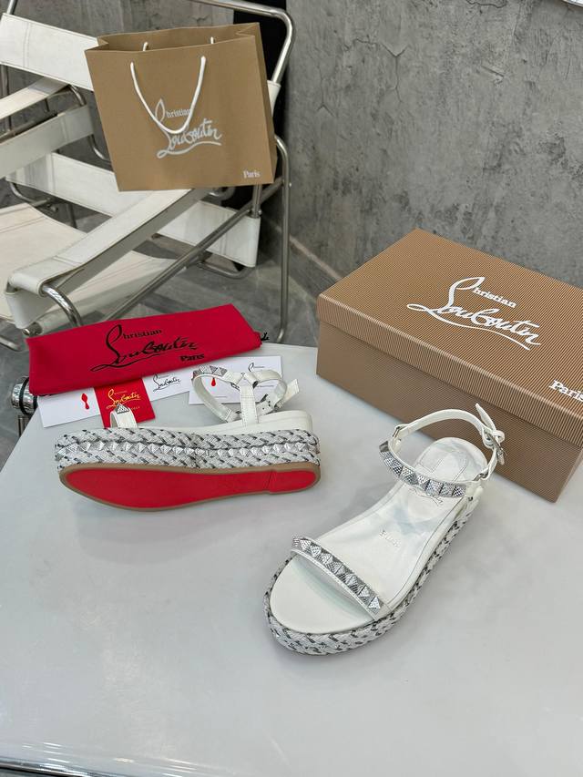 春夏季红底6com厚底 12com坡跟 经典款款凉鞋又加 新颜色啦 官网颜色齐 超强吸睛利器 众多棵珍珠 幻彩 四方柳钉 女王还是淑女、丰满还是纤细统统HOID住 面料 头层牛羊皮 羊京 垫脚羊皮。可做真皮底 40-41码要订做 1~3 天 注:订做的非质量问题 不退不换 亲们凉解。标准码34-41码