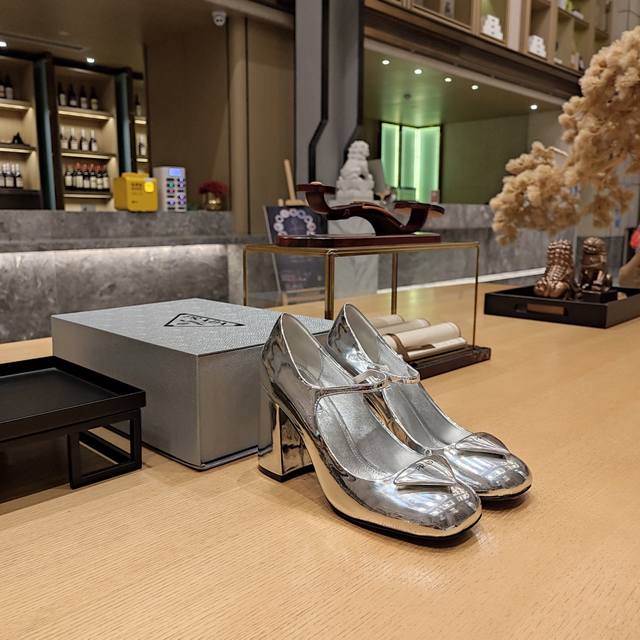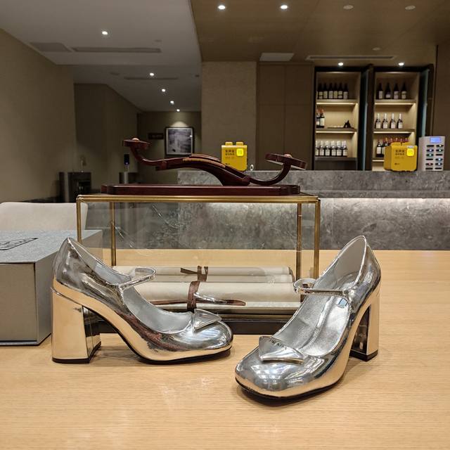 春夏新品, 顶级版本 实力来袭!Prada Glow限时店很闪亮的单品 玛丽珍单鞋意大利专柜代购原版鞋开发,1比1照足原味复刻。今年的主题镜面元素,以金银双色为主。