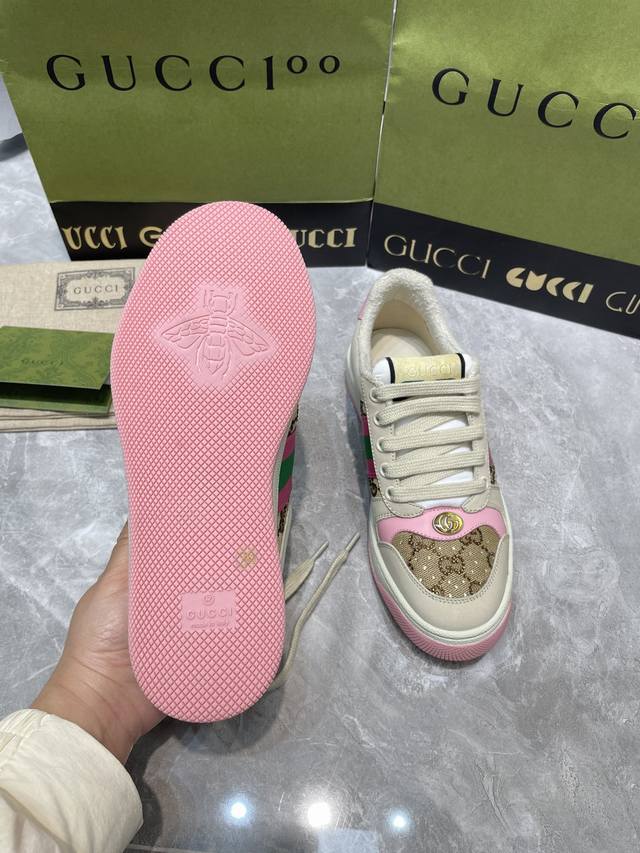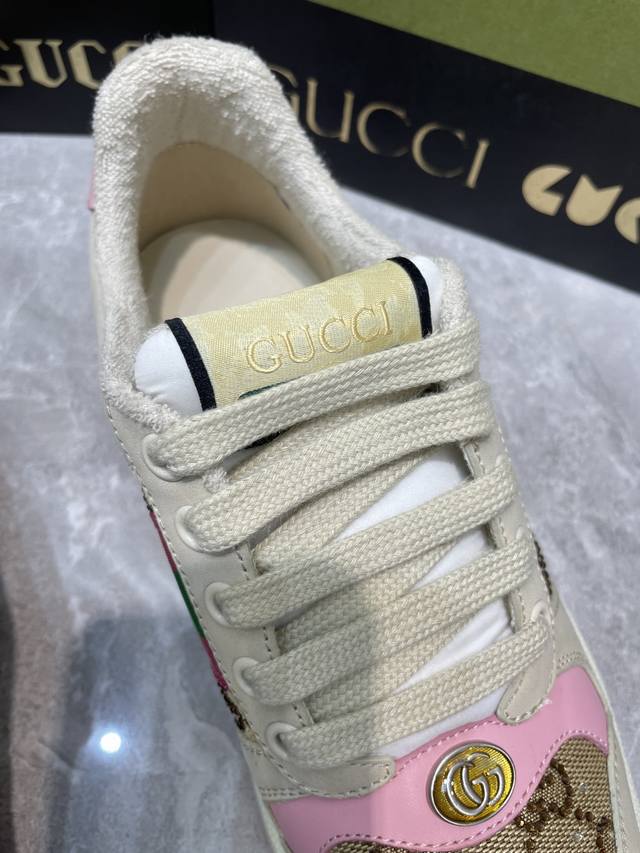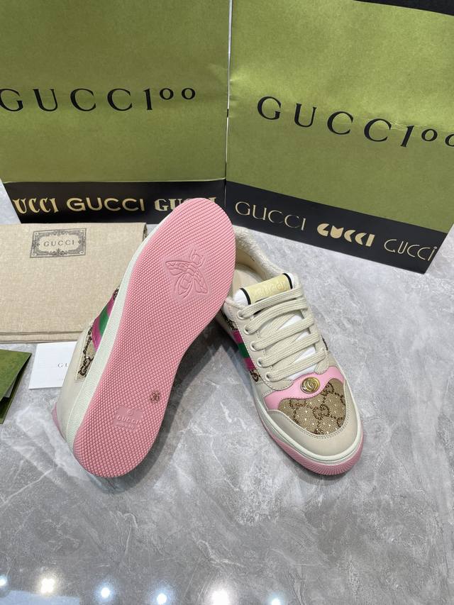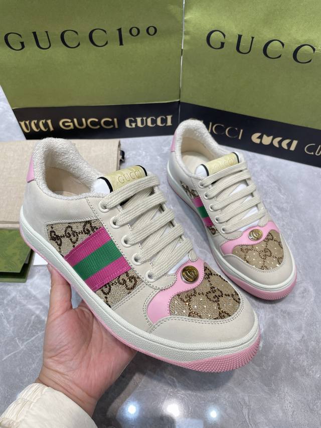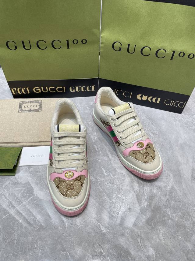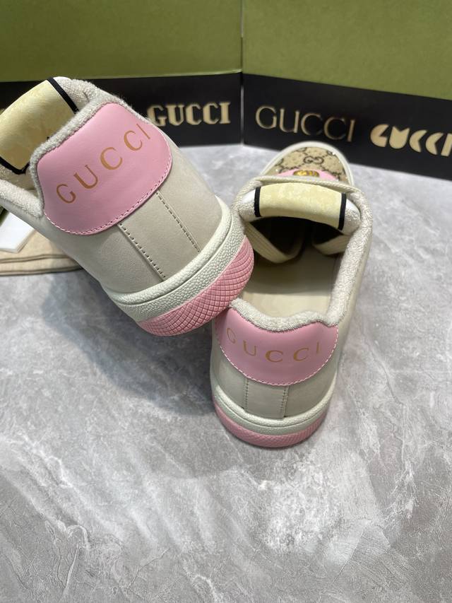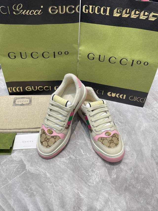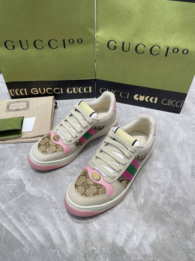 Gucci 系列做旧时尚小脏鞋. 国际时装周走秀款!李宇春等各明星人手一双!国外购原版一比一开发复刻采用原版套楦工艺!原版订制牛皮,五金订制金属双G椭圆形标,Gucci原版织带,内里由原版毛巾布料细腻柔软更舒适透气,私模原版一比一双色TPU大底,原版开模垫脚牛皮,Gucci 专柜限量版顶级包装。
