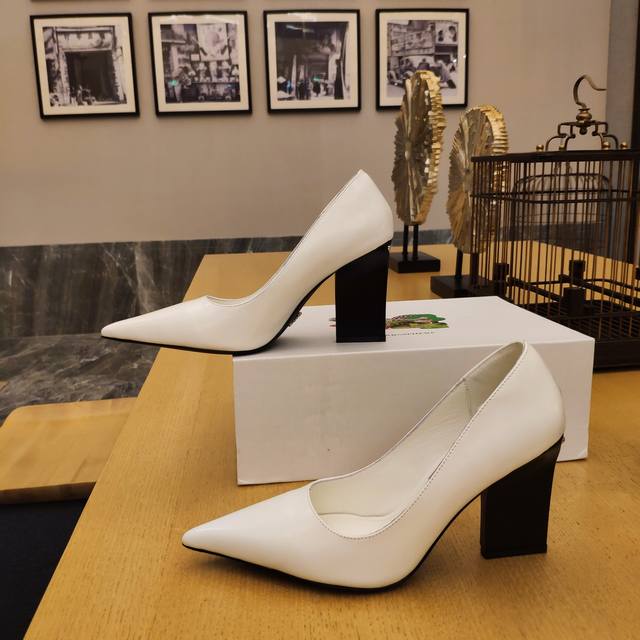 頂級包裝配套最高版本 PRADA 普拉達秋冬新品, 頂級版本 實力來襲! 奇異三角跟 四季尖頭單鞋。