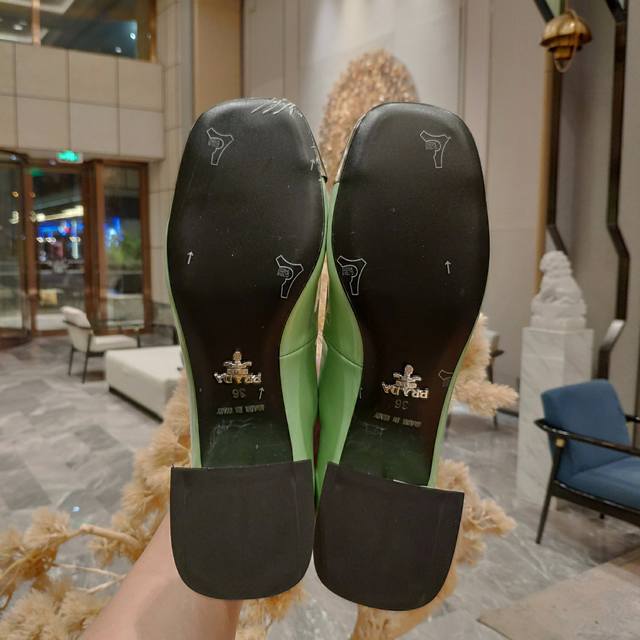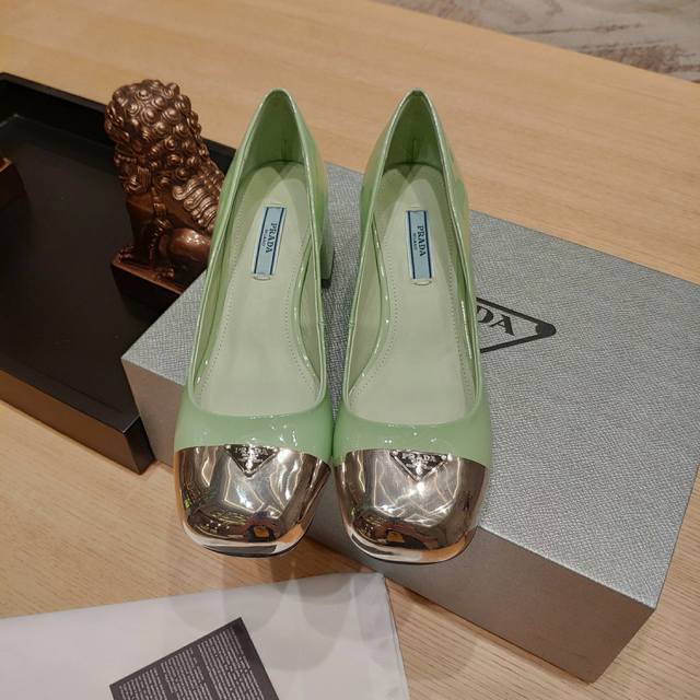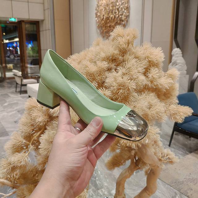 “Prada”LOGO美学文化的博大精深,爆单猫跟鞋后又一大作,将原标金属铁头标识完美利用到了鞋头之上,超级无敌轻脚,脚感超好~时髦百搭nice单品,意大利专柜代购原版鞋开发,1比1照足原味复刻。 金属鞋头与粗跟相得益彰增添的气质与良好的舒适性勾勒出腿部纤细的线条同时又具有很好的包裹性! 2024S超级爆系列爆品,各大网红明星乔欣,程潇,刘令姿同款圆头 玛