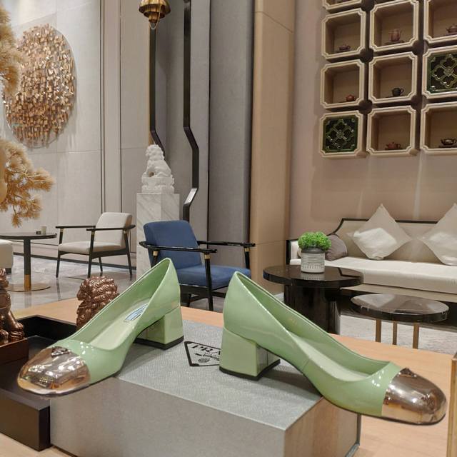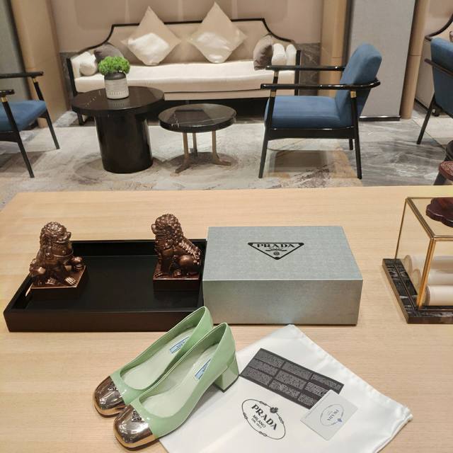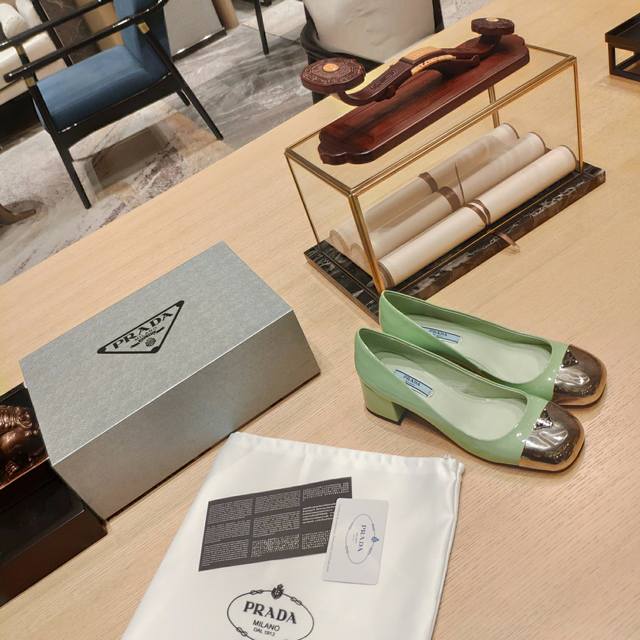 顶级包装配套最高版本 PRADA 普拉达新品, 顶级版本 实力来袭!Prada Glow限时店很闪亮的单品 原版鞋头玛丽珍单鞋形状圆形铁头 系列: