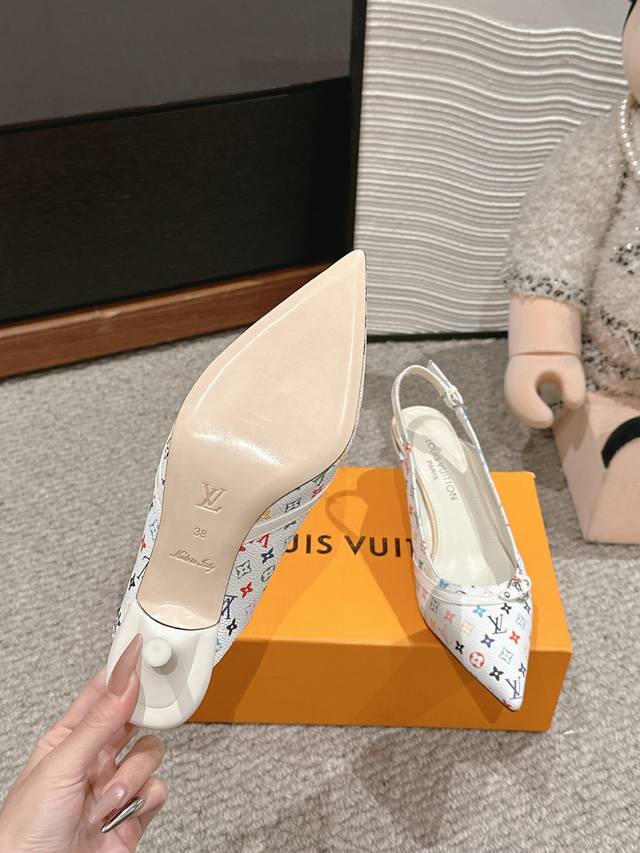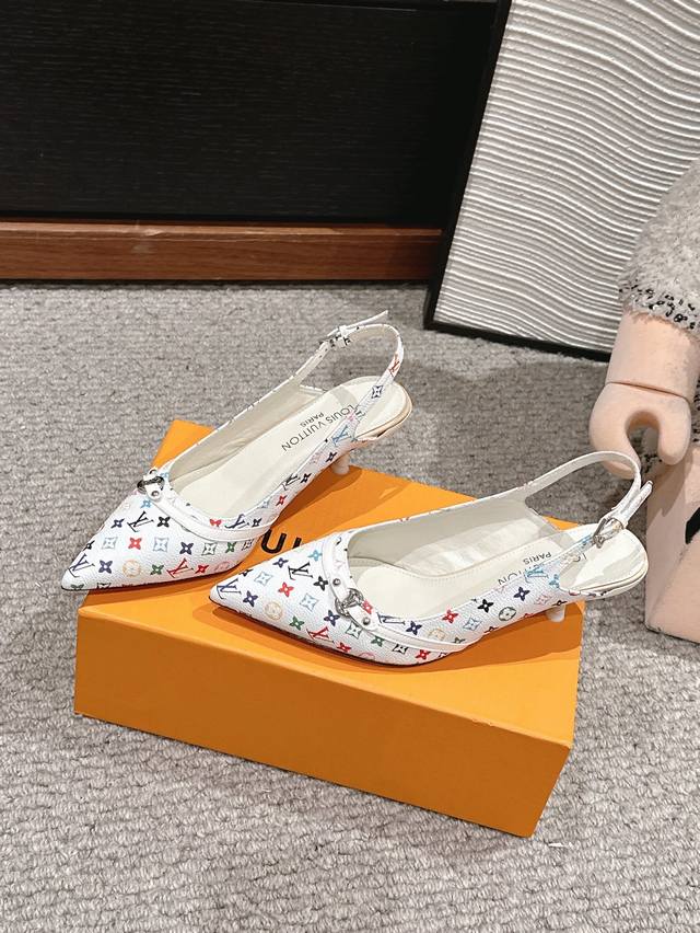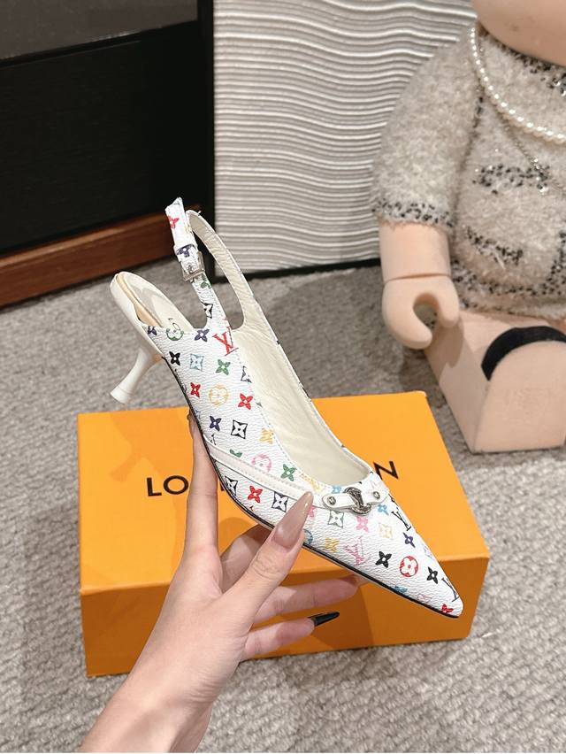 Lv五金 “logo”饰以点缀,细节质感特别的高级!犀利的造型效果视觉盛宴难以掩饰lv的优雅气质刚刚好的4.5cm小猫跟,好穿舒适性感精致绝伦~