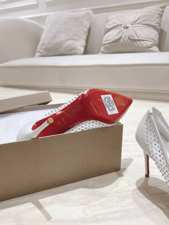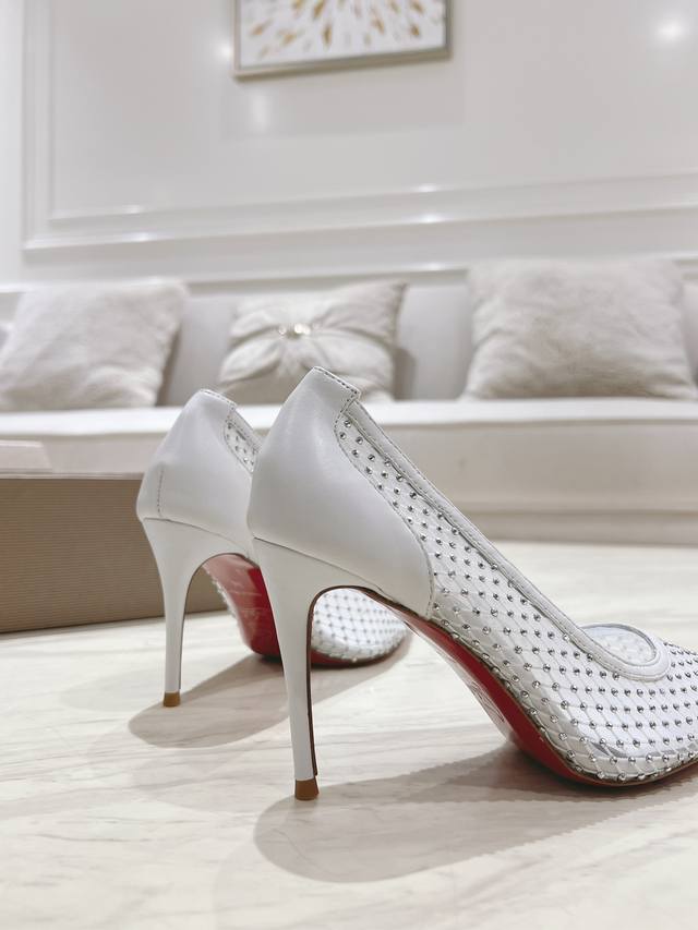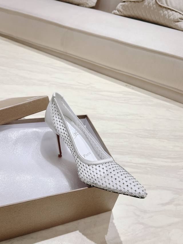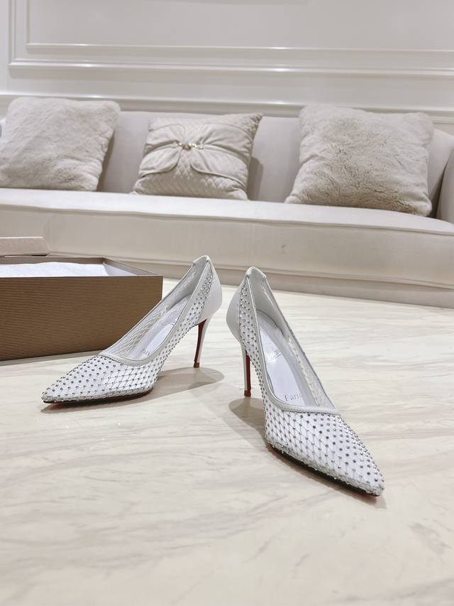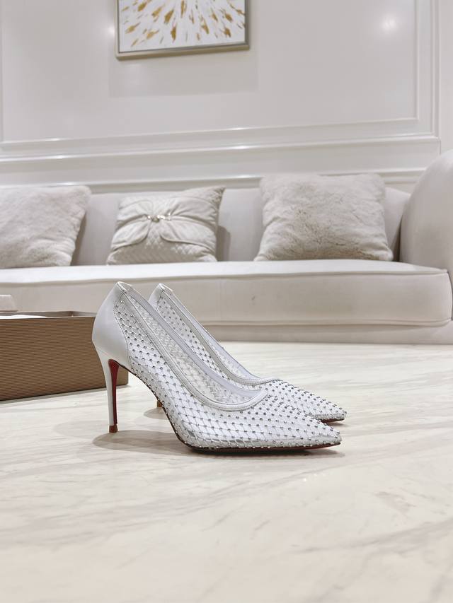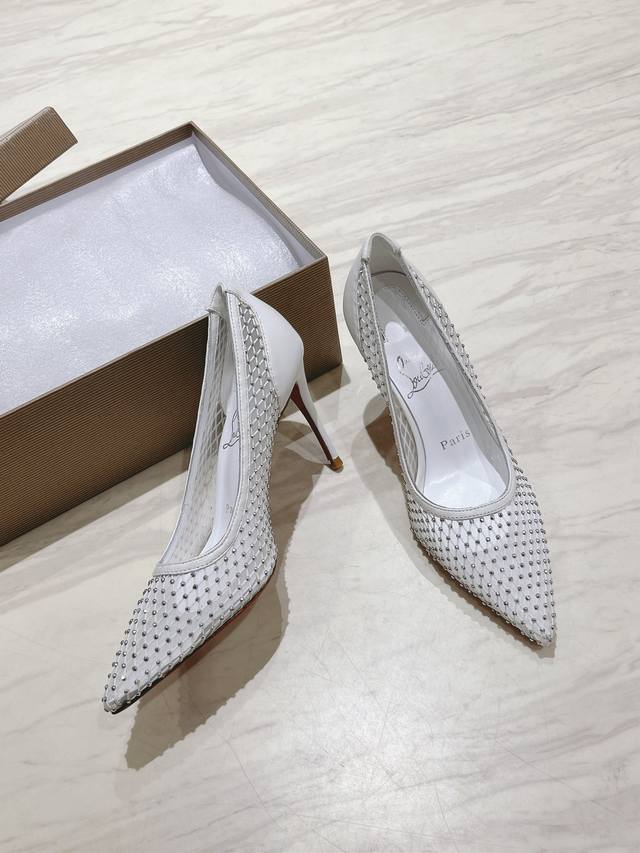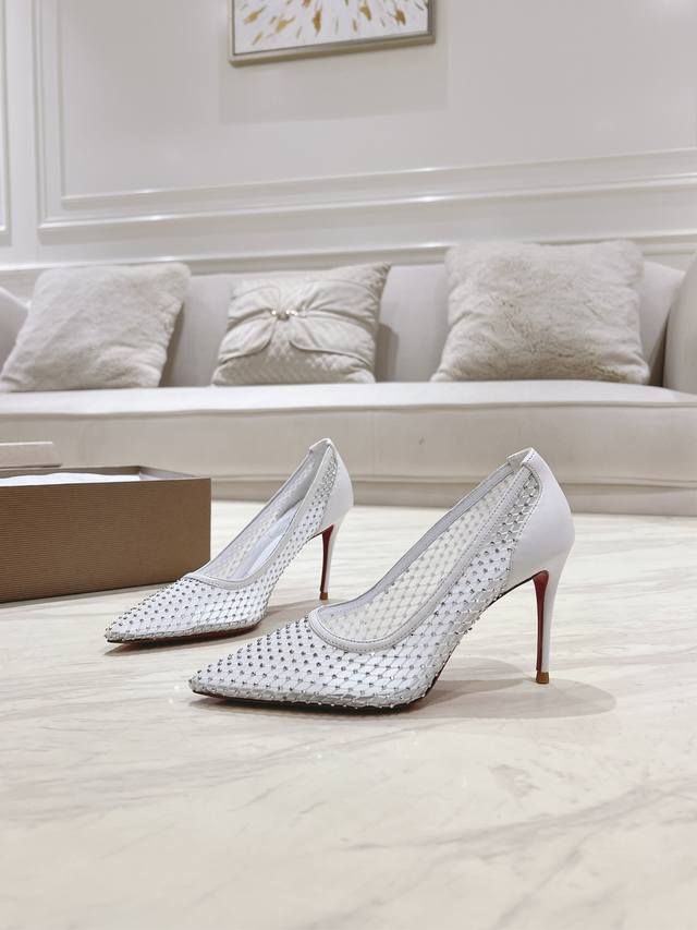 Christian Louboutin 2024s原版做货重工CL 经典Apostropha Mesh Strass网纱高跟鞋~
