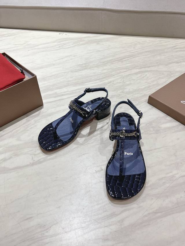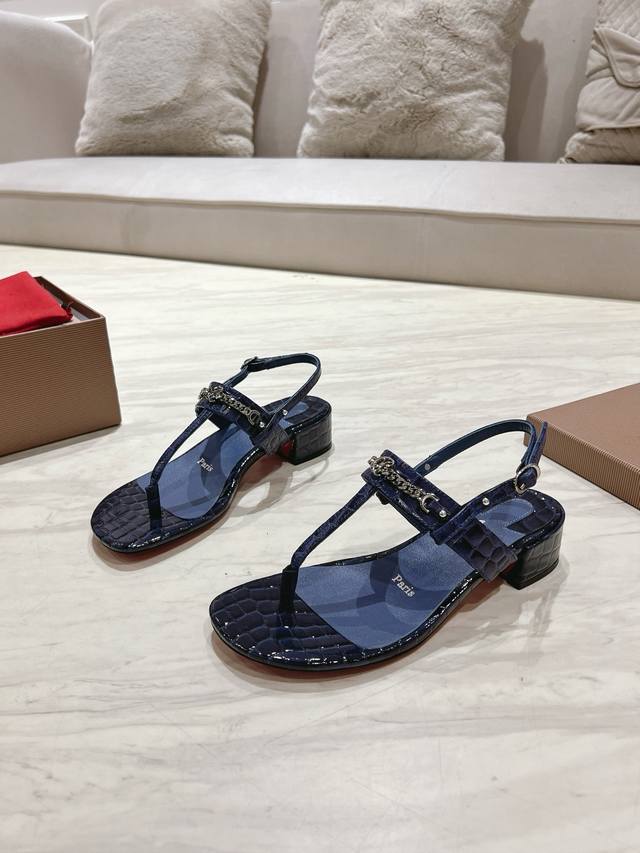 Christian Louboutin 2025s原版做货CL红底女士夹趾高跟凉鞋~