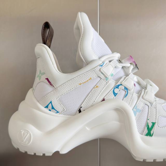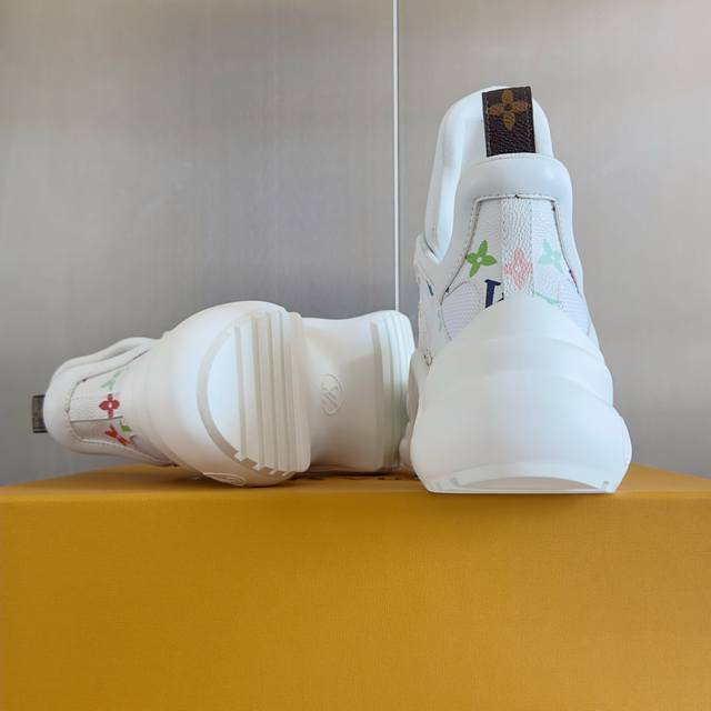 原版购入开发 做货 原版购入开发 做货 本款 LV Archlight 运动鞋出自 Nicolas Ghesquière 之手,以牛皮革裁成妙趣构型。双鞋带点缀路易威登标识串珠。宽大鞋舌和波浪形外底树立辨识度,二者均饰有 LV Circle 标识。Monogram 帆布后袢带完善细节