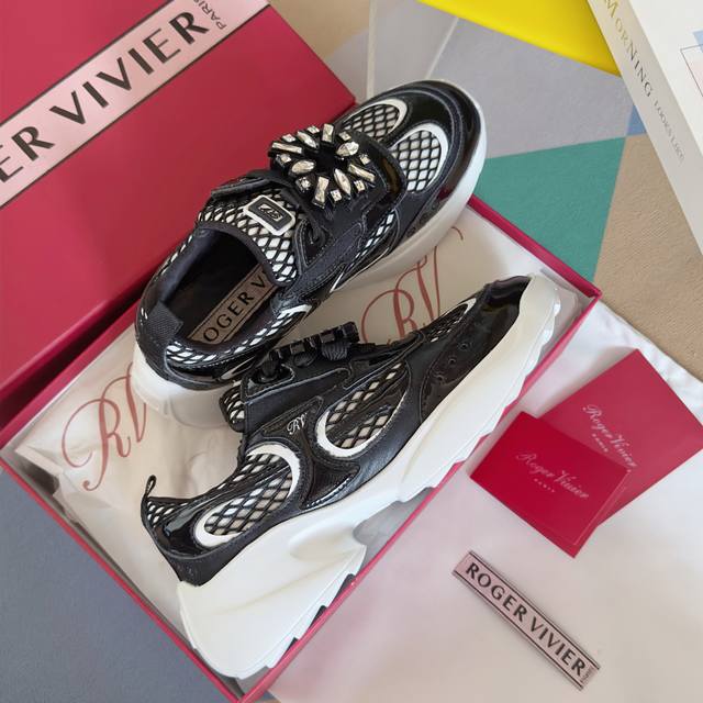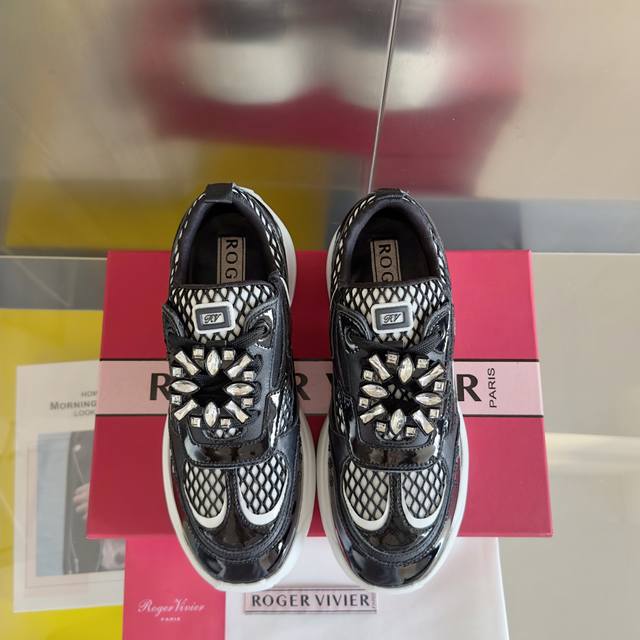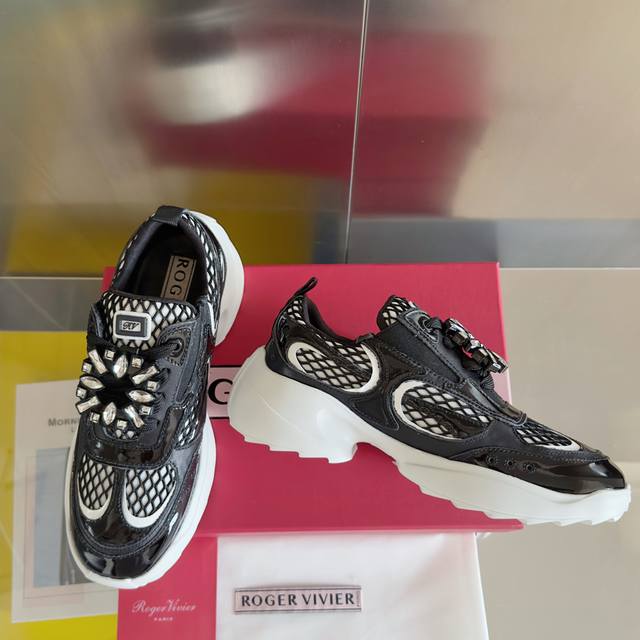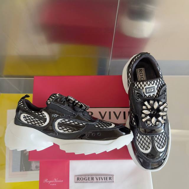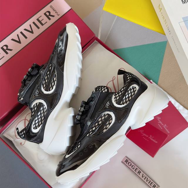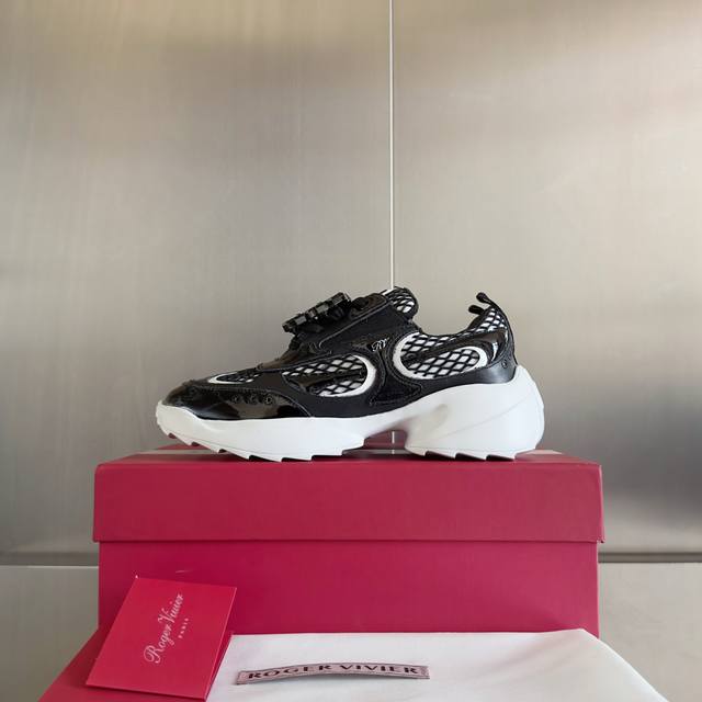 Roger Vivier 最新款 Viv' on the Run系列 钻扣 方扣 金属 厚底 休闲 运动鞋
