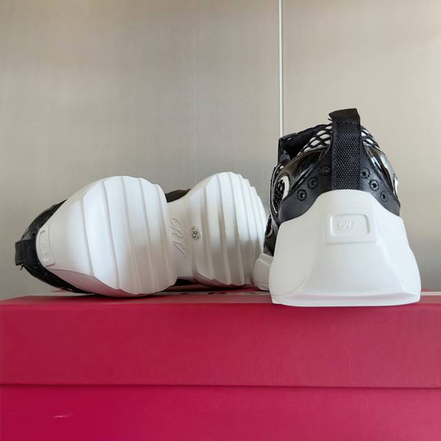 原版购入开发 做货 这款Viv' on the Run系列运动休闲鞋以锯齿边鞋底吸引眼球,皮革拼镜面织物和网眼面料制成,点缀可拆卸橡胶牌,脚感平稳舒适,休闲活泼又不失维维亚精致风格