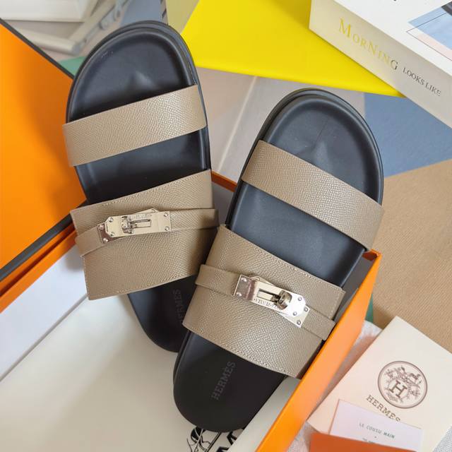 Hermes爱马仕Jackson系列 Kelly扣 复古 二舅 拖鞋 H拖 凉鞋