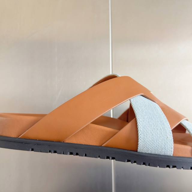 原版购入开发 做货 这款Kazimir编织饰带和小牛皮机能凉鞋。以“H”标志性图案为灵感的交织鞋面打造休闲造型,可谓夏日良伴