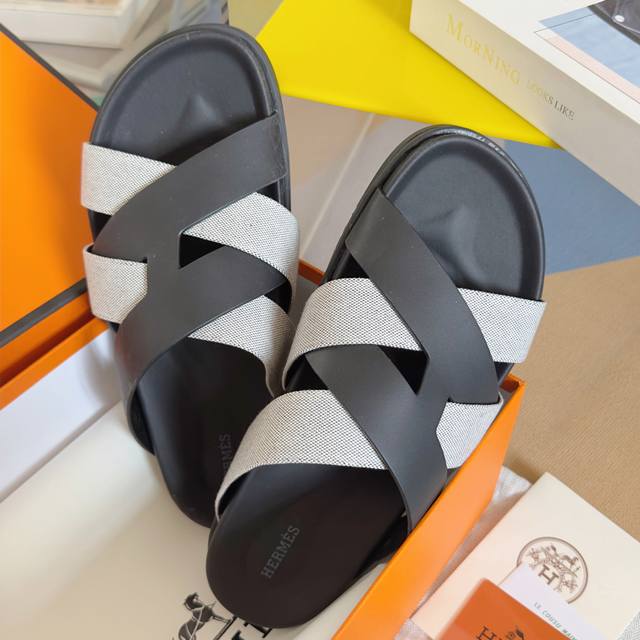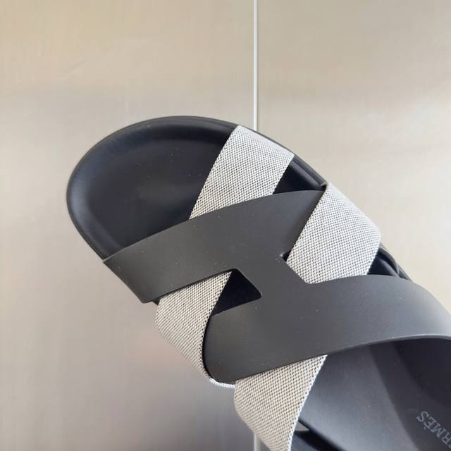 原版购入开发 做货 这款Kazimir编织饰带和小牛皮机能凉鞋。以“H”标志性图案为灵感的交织鞋面打造休闲造型,可谓夏日良伴