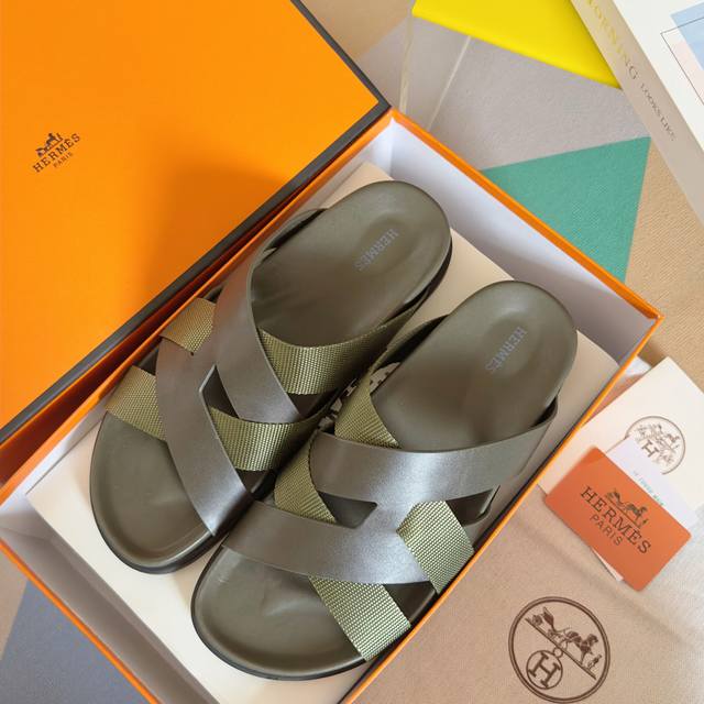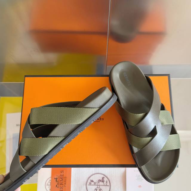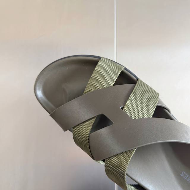 原版购入开发 做货 这款Kazimir编织饰带和小牛皮机能凉鞋。以“H”标志性图案为灵感的交织鞋面打造休闲造型,可谓夏日良伴