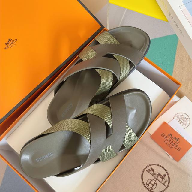 Hermes爱马仕Kazimir系列 交叉 织带 防水台 凉鞋 复古 二舅鞋 H拖鞋