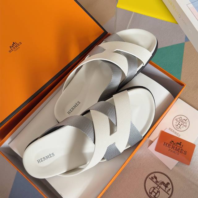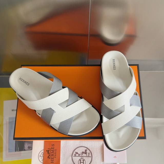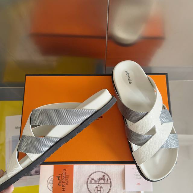 顶级版本:情侣款 Hermes爱马仕Kazimir系列 交叉 织带 防水台 凉鞋 复古 二舅鞋 H拖鞋原版购入开发 做货 这款Kazimir编织饰带和小牛皮机能