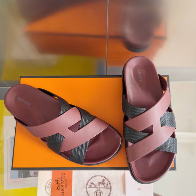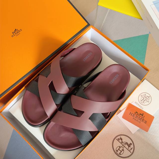 原版购入开发 做货 这款Kazimir编织饰带和小牛皮机能凉鞋。以“H”标志性图案为灵感的交织鞋面打造休闲造型,可谓夏日良伴