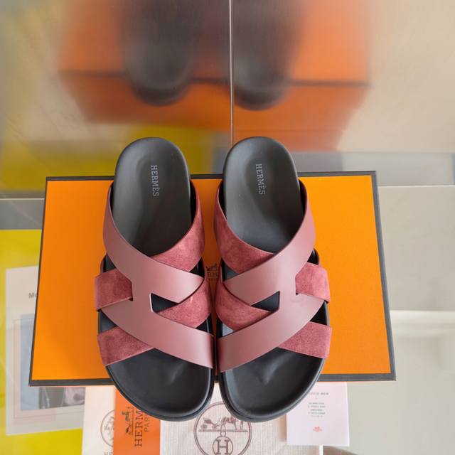 顶级版本:情侣款 Hermes爱马仕Kazimir系列 交叉 织带 防水台 凉鞋 复古 二舅鞋 H拖鞋原版购入开发 做货 这款Kazimir编织饰带和小牛皮机能
