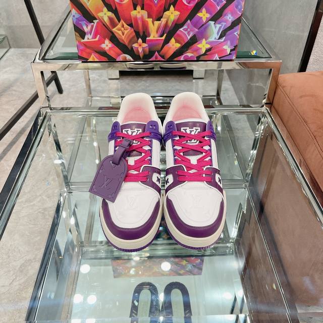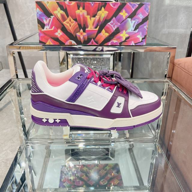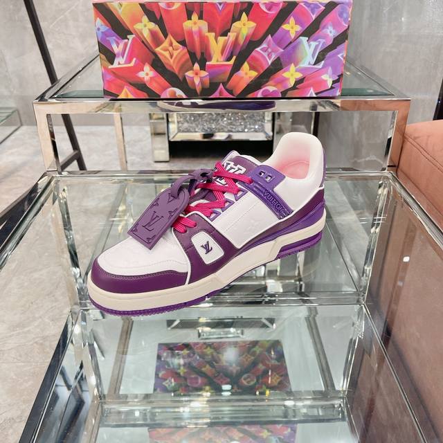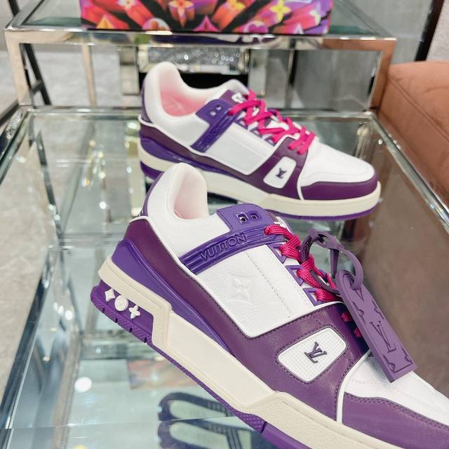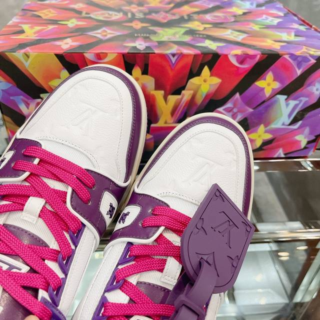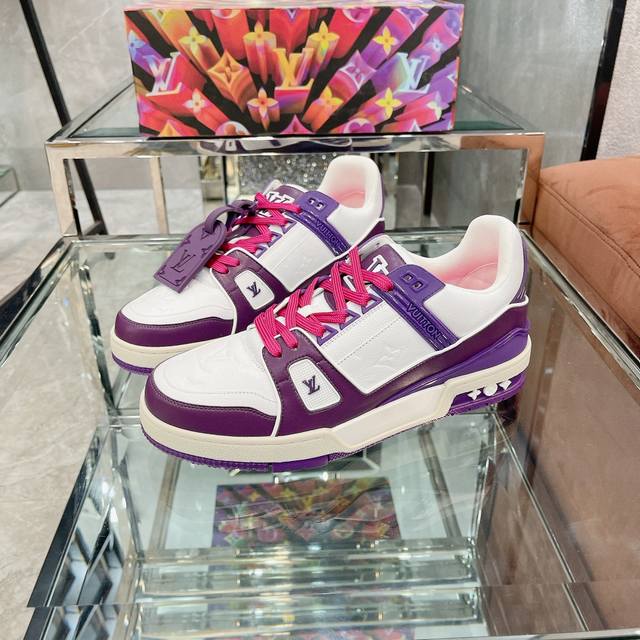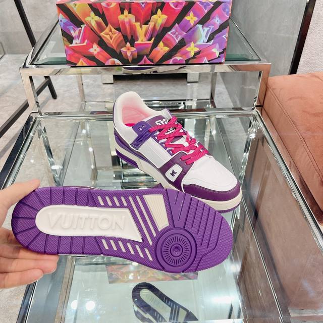 Virgil Abloh 向篮球鞋设计汲取灵感,推出标志性 LV Trainer 运动鞋,经典的花纹富含着整体的特性,此次取材压印细腻 Monogram 图案的,并延续创新凝胶外底带来的舒适体验。